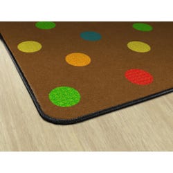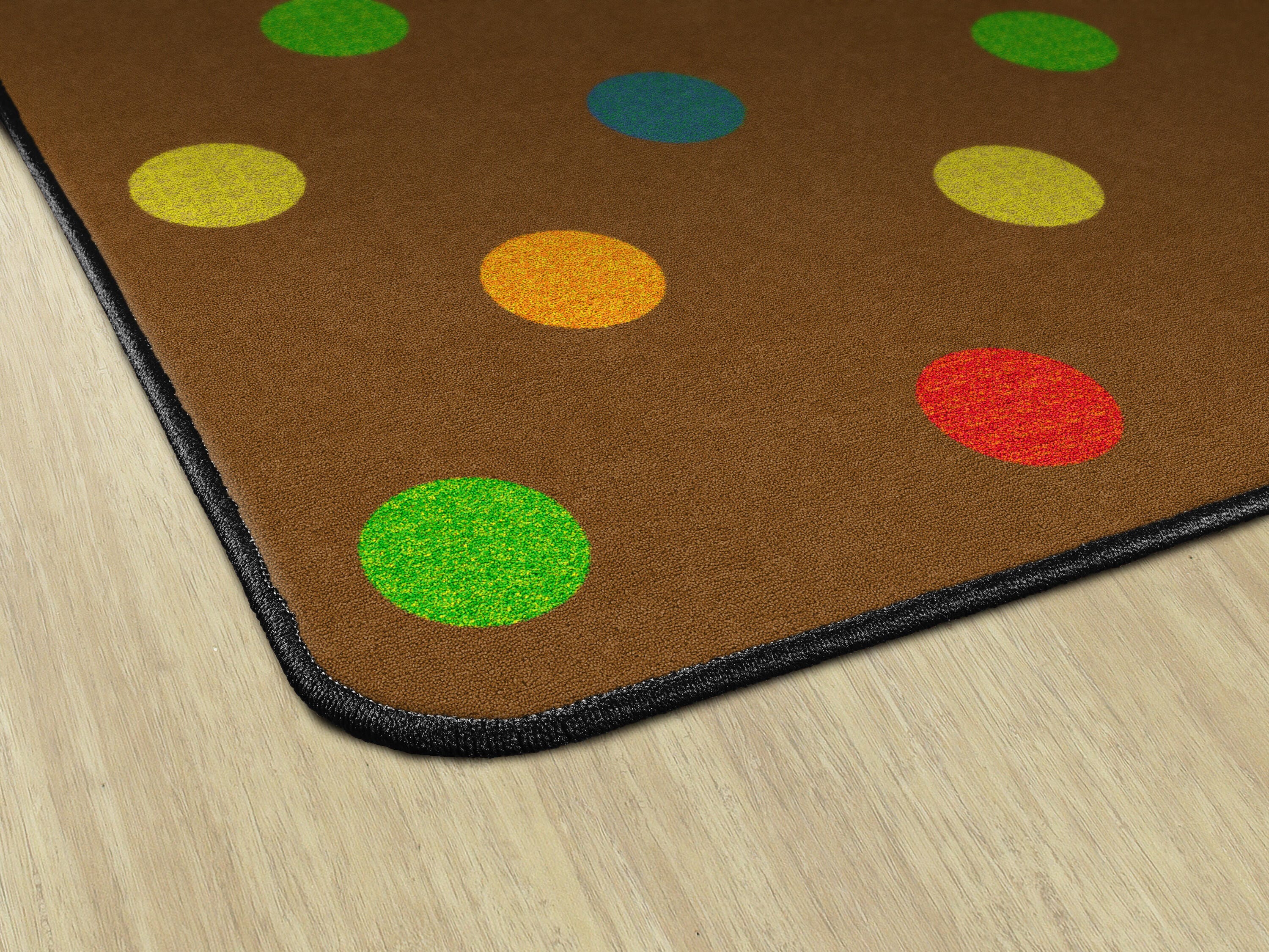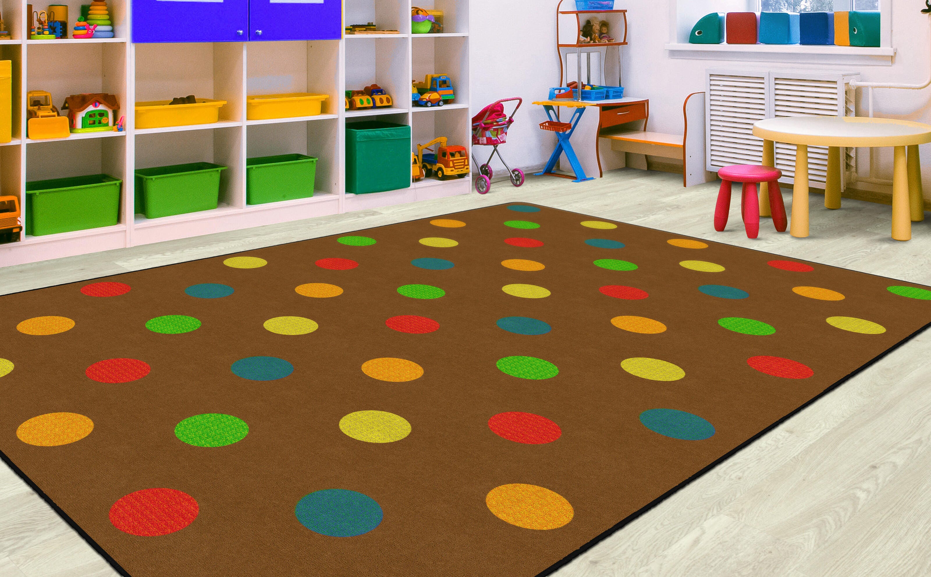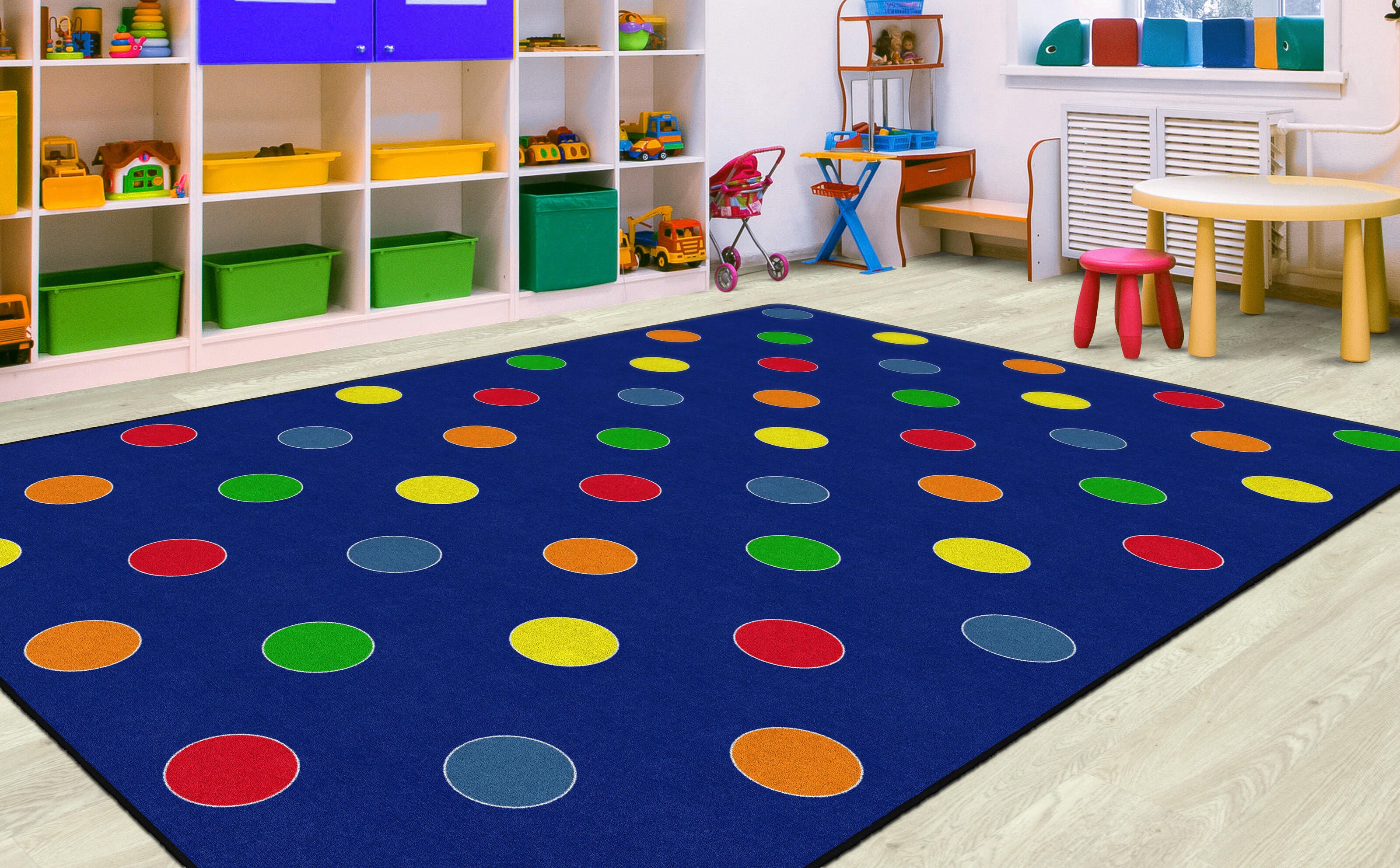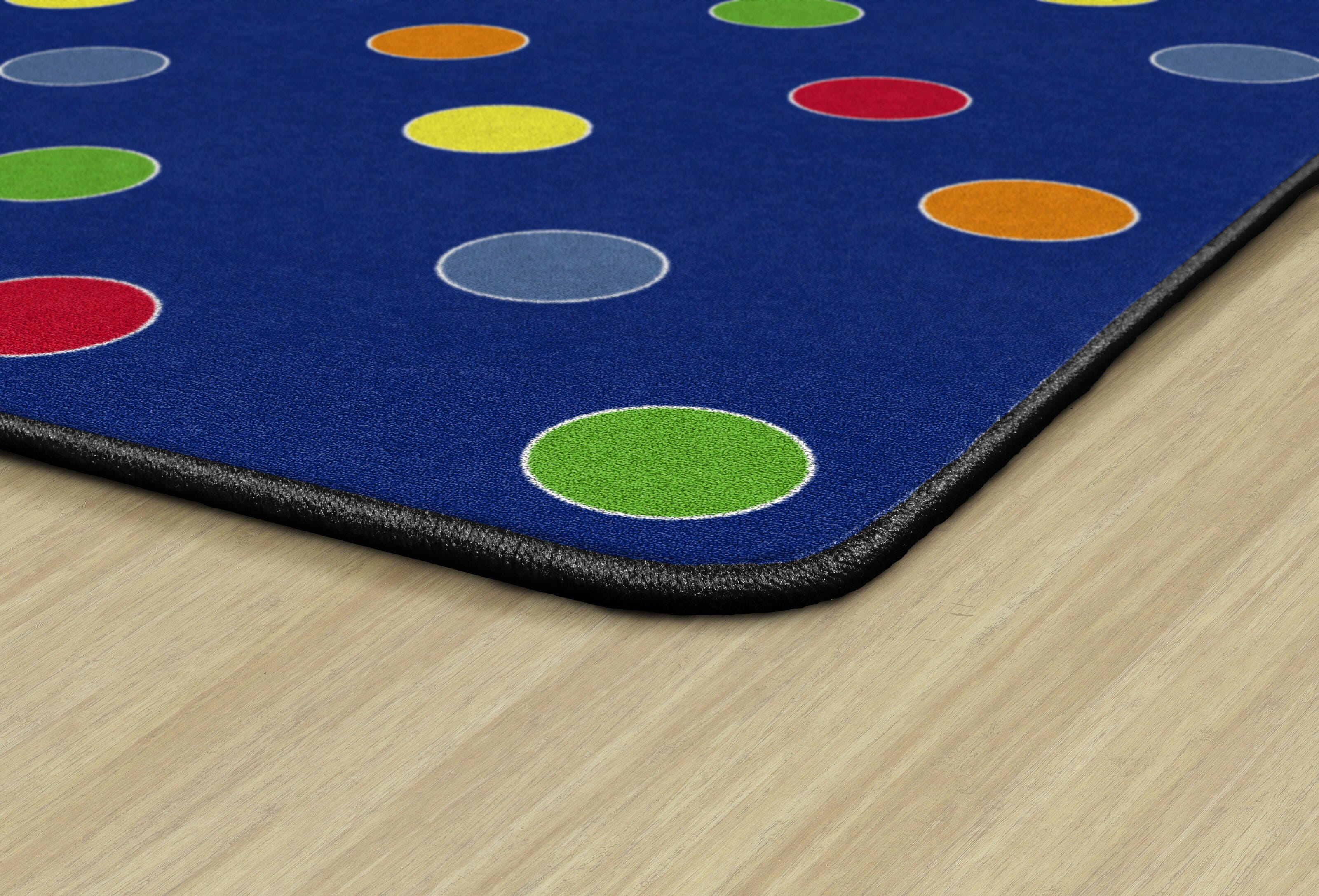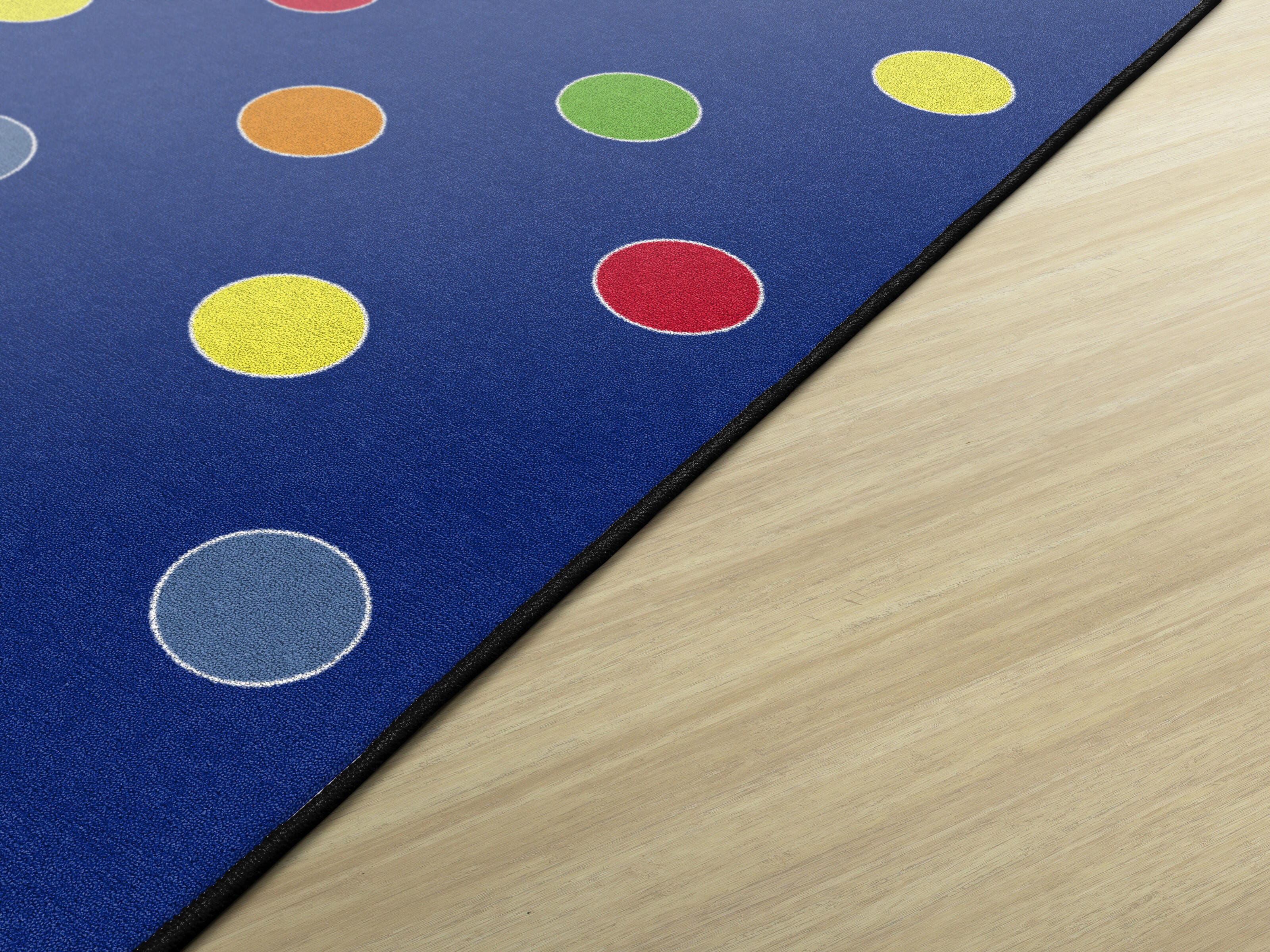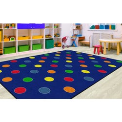 Flagship Carpets Dots classroom rug is a great seating carpet for any instructional or educational space, like classrooms and playrooms. Treated with SCOTCHGARD-PROTECTOR for superior soil resistance and FORCE 5, a permanent anti-microbial agent to guard against odor, mildew, and mold. All Flagship Carpets are CRI Green Label Plus Certified. Available in multiple sizes to best match your space. Please select the appropriately sized rectangle carpet when ordering.Features