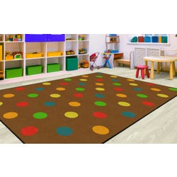 Take a seat on the dot with this colorful Dots Flagship Carpet. This classroom carpet is stain-resistant and mildew-resistant to last as long as your classroom needs it. Available in several sizes to best match your space.