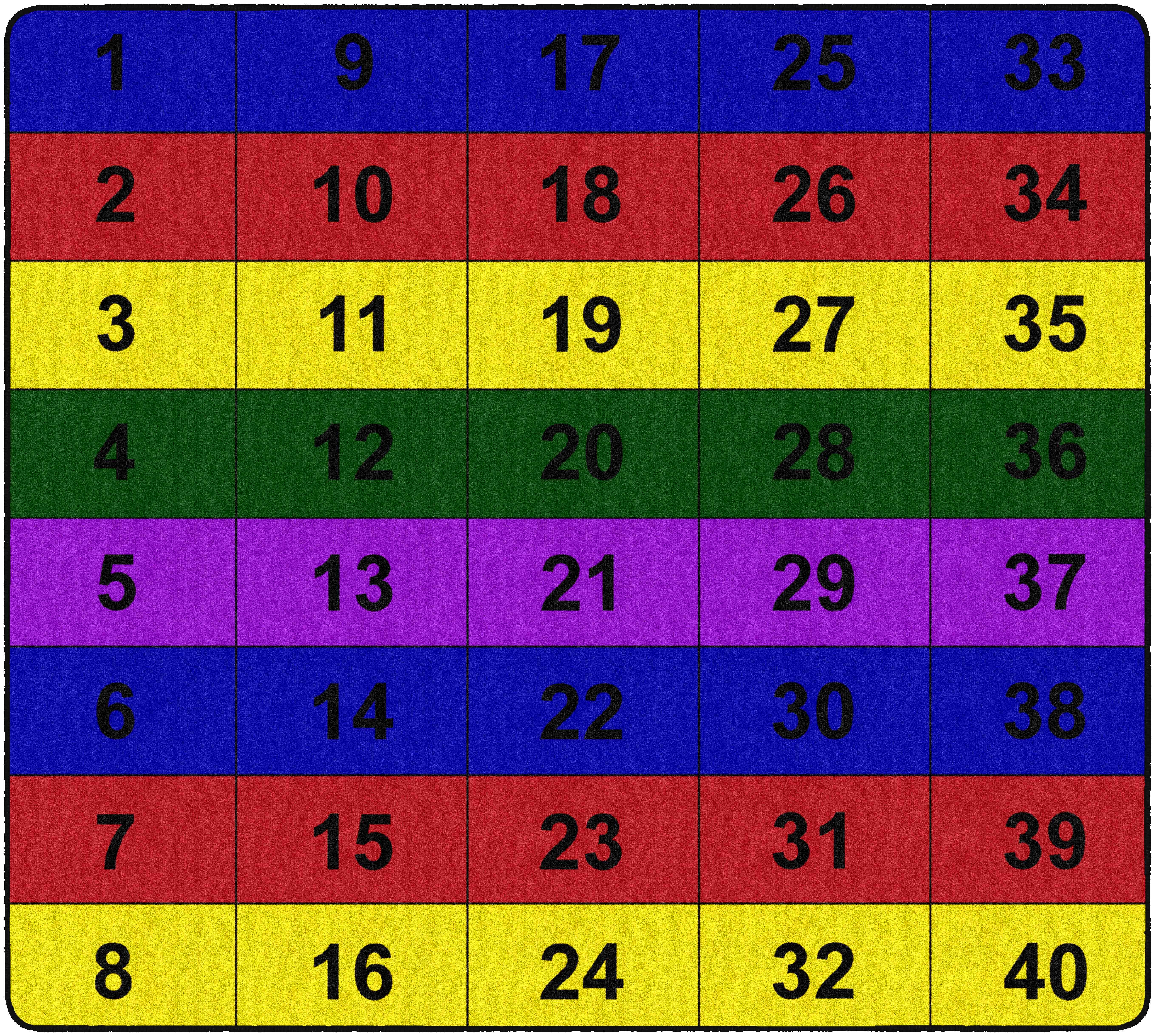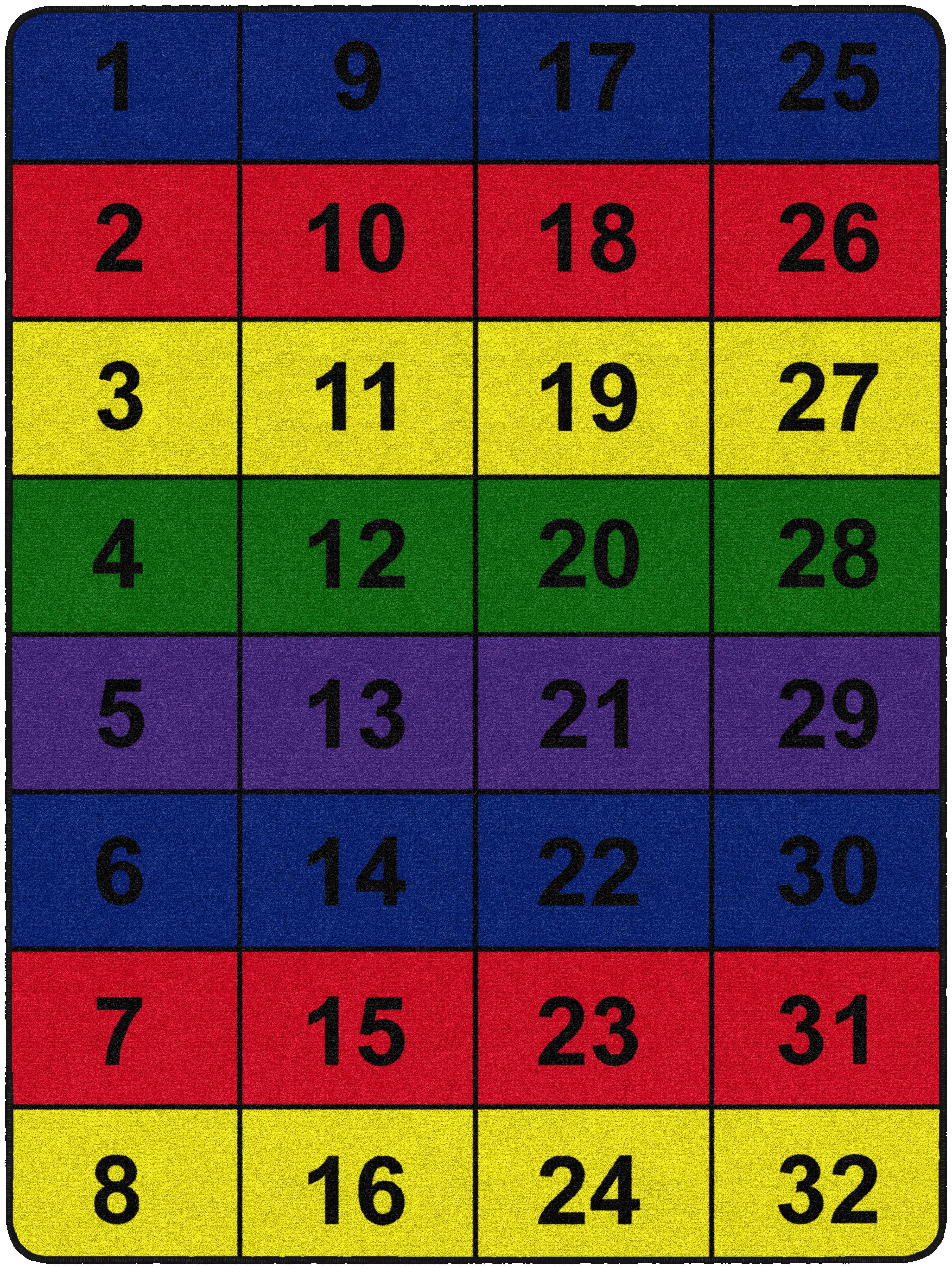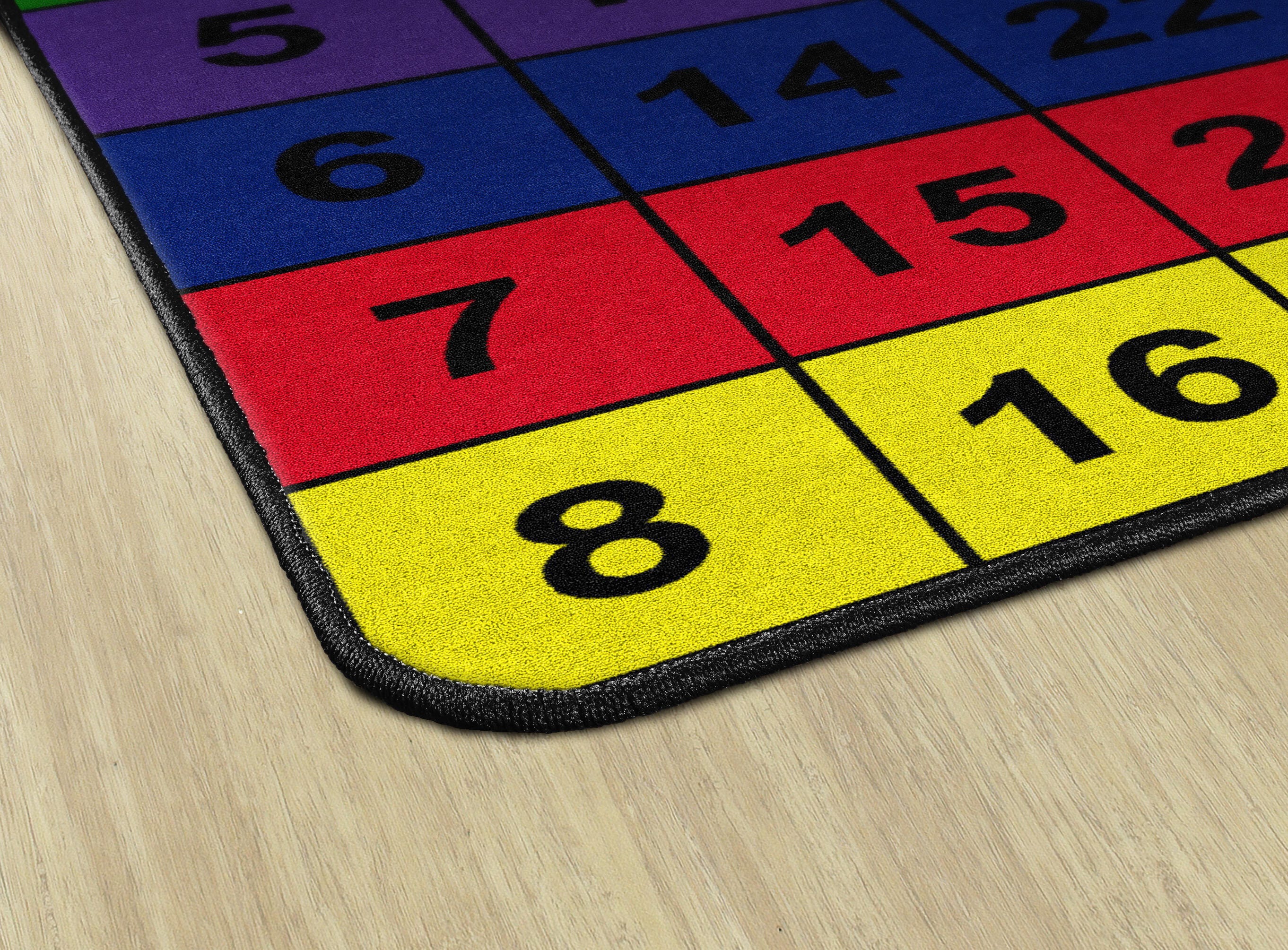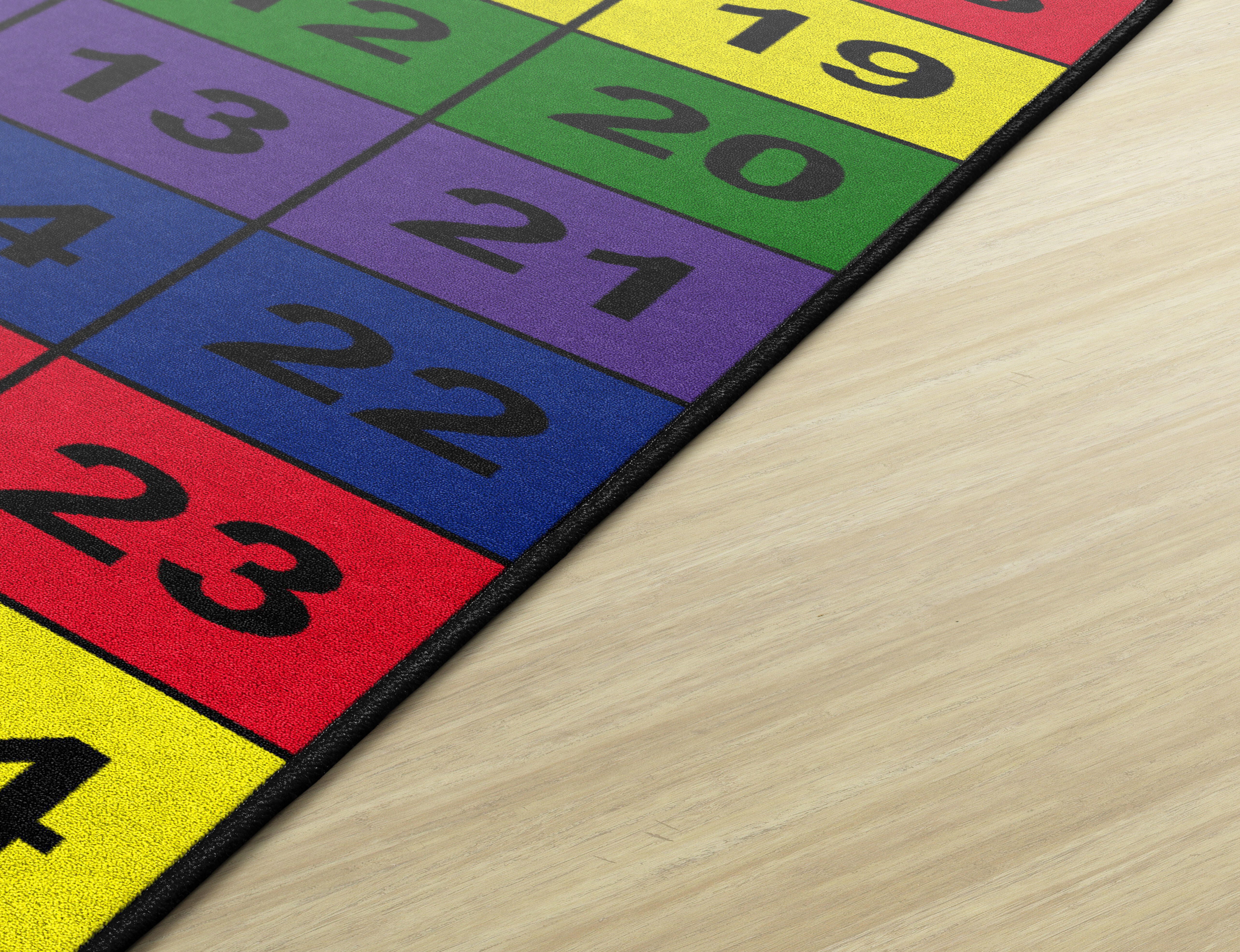 The Flagship Carpets Number Blocks Rectangle Carpet has bold numerals in bright, primary color blocks making it a great choice to help early learners practice counting. This colorful area rug is constructed of dense nylon fiber and treated with Scotchguard stain protection. The edges are tightly bound and double-stitched for maximum strength, and the skid-resistant Action Bac woven backing system prevents wrinkles and bunching so it provides long-lasting use. A permanent antimicrobial treatment protects against odors, mold, and mildew to keep it safe and clean in any classroom, preschool, childcare center, or home.Features