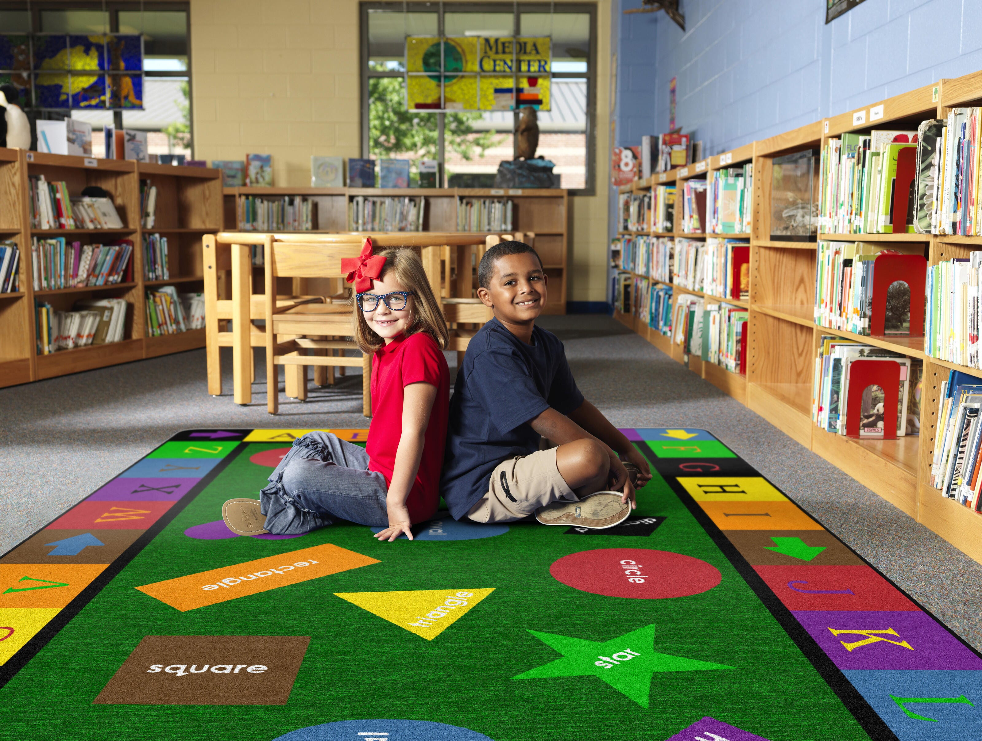 Children will love learning shapes, colors, and the alphabet with this Simple Shapes carpet! Flagship Carpets delivers premium quality and engaging designs that students and teachers love.
