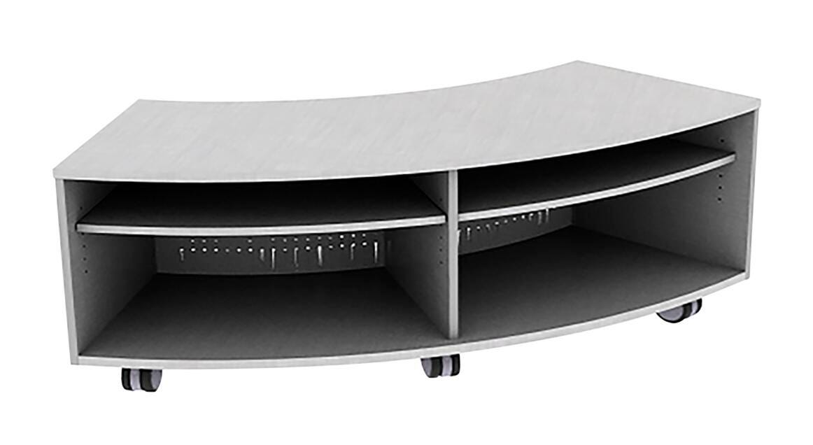 The clean, refined look of the Fleetwood Designer 2.0 series is timeless - a good thing since the furniture is built to last a lifetime. This curved shelf cabinet was crafted with one-of-a-kind casters making it easy to repurpose the pieces, and the ergonomic edges and anti-tipping mechanisms enhance safety. This storage cabinet is fully mobile, has 2 locking casters to ensure it stays stable in place, and four extra-spacious curved shelves for your items.Features