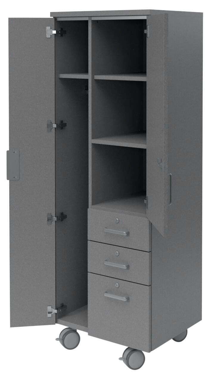 The clean, refined look of the Designer 2.0 series is timeless - a good thing since the furniture is built to last a lifetime. One-of-a-kind casters make it easy to repurpose pieces, while ergonomic edges and anti-tipping mechanisms enhance safety. This wardrobe tower is fully mobile on 4 casters (2 locking).