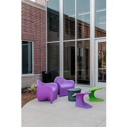 Amped Table is also used as a stool. One-piece hard plastic table/stool makes a design statement. Non-marking rubber legs protect your indoor and outdoor floor surfaces and provide excellent grip on any flooring surface. Engineered for year round outdoor use and exposure to sun, snow, sand, salt, and rain. The top of the table/stool is slightly crowned to promote the shedding of water, quick drying, and immediate use after it becomes wet. Supreme tamper resistance and a easy surface to wash and sanitize.Features