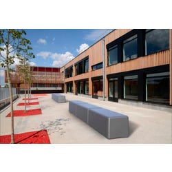 Dash is a straight bench that can be used in modular arrangements with the Tenjam's Swerve (arc shape) bench to create many seating arrangements. Use Dash by itself or pair it with more Dash and Swerve Benches to provide continuous seating. One-piece hard plastic design provides the ultimate in tamper resistance and easy cleaning and disinfecting. Supports over 750 pounds. Non-marking rubber legs protect your indoor and outdoor floor surfaces and provide excellent grip on any flooring surface. Engineered for year round outdoor use and exposure to sun, snow, sand, salt, and rain. The top of the bench is slightly crowned to promote the shedding of water, quick drying, and immediate use after it becomes wet.Features