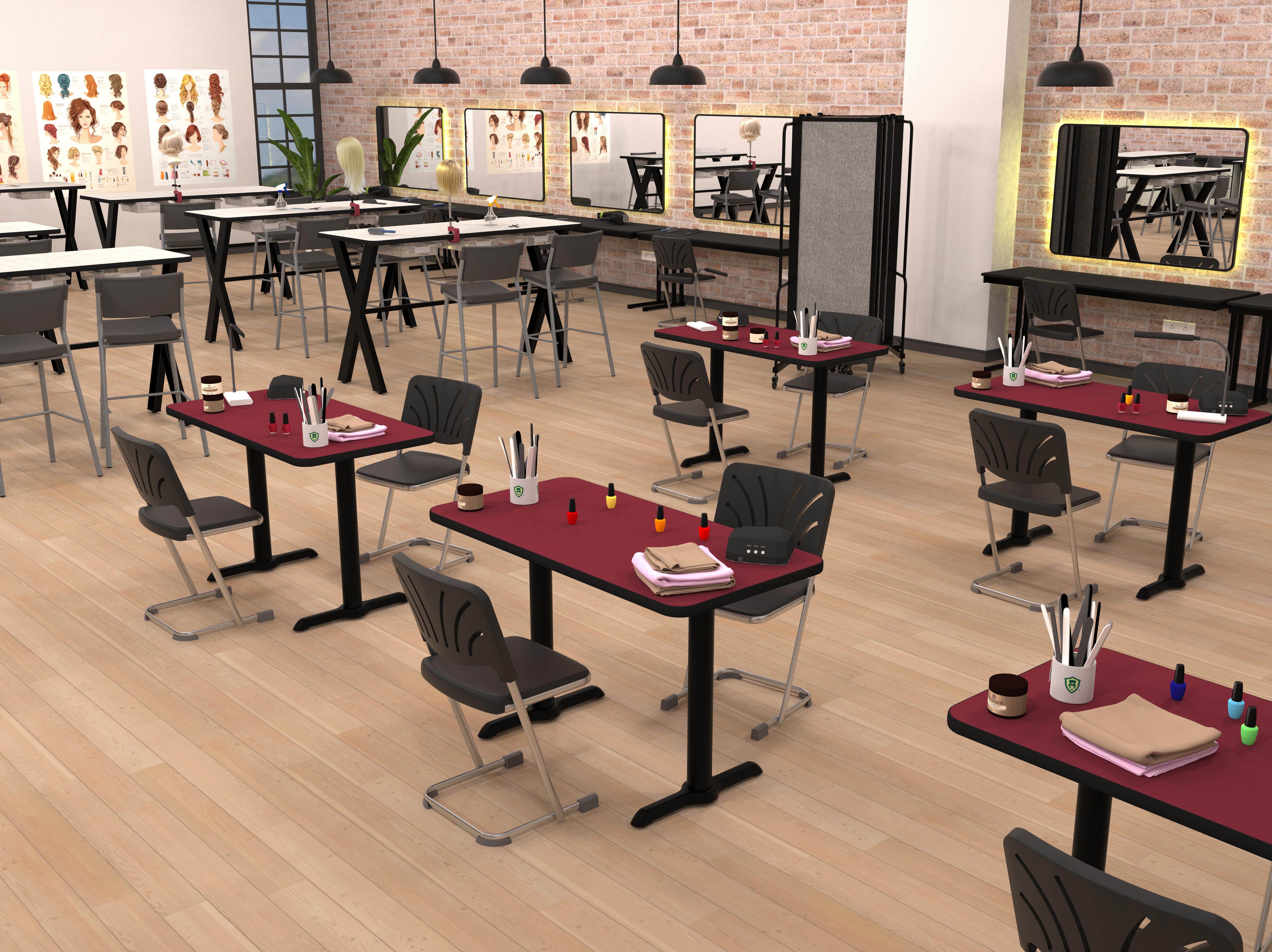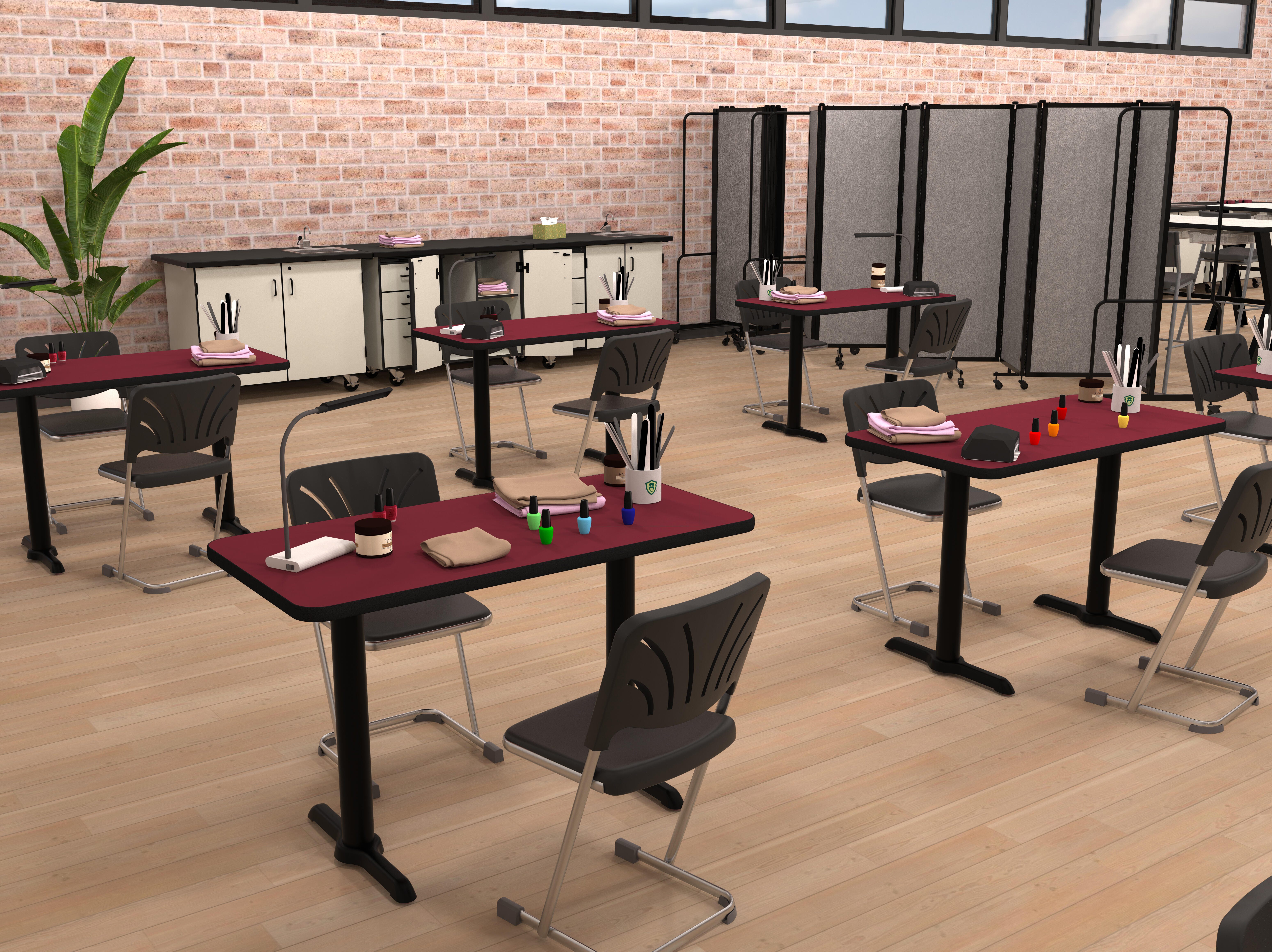 U-shaped, sled-base legs distribute weight across a wider surface, minimizing pressure on floors