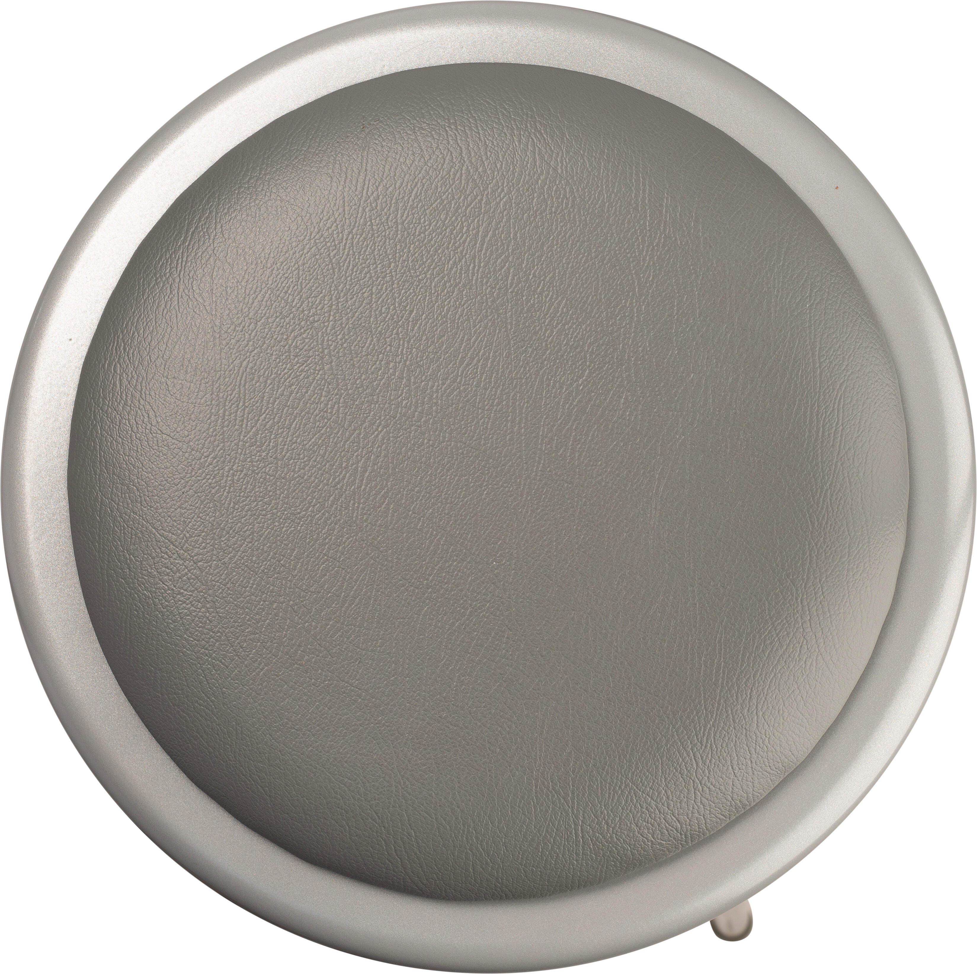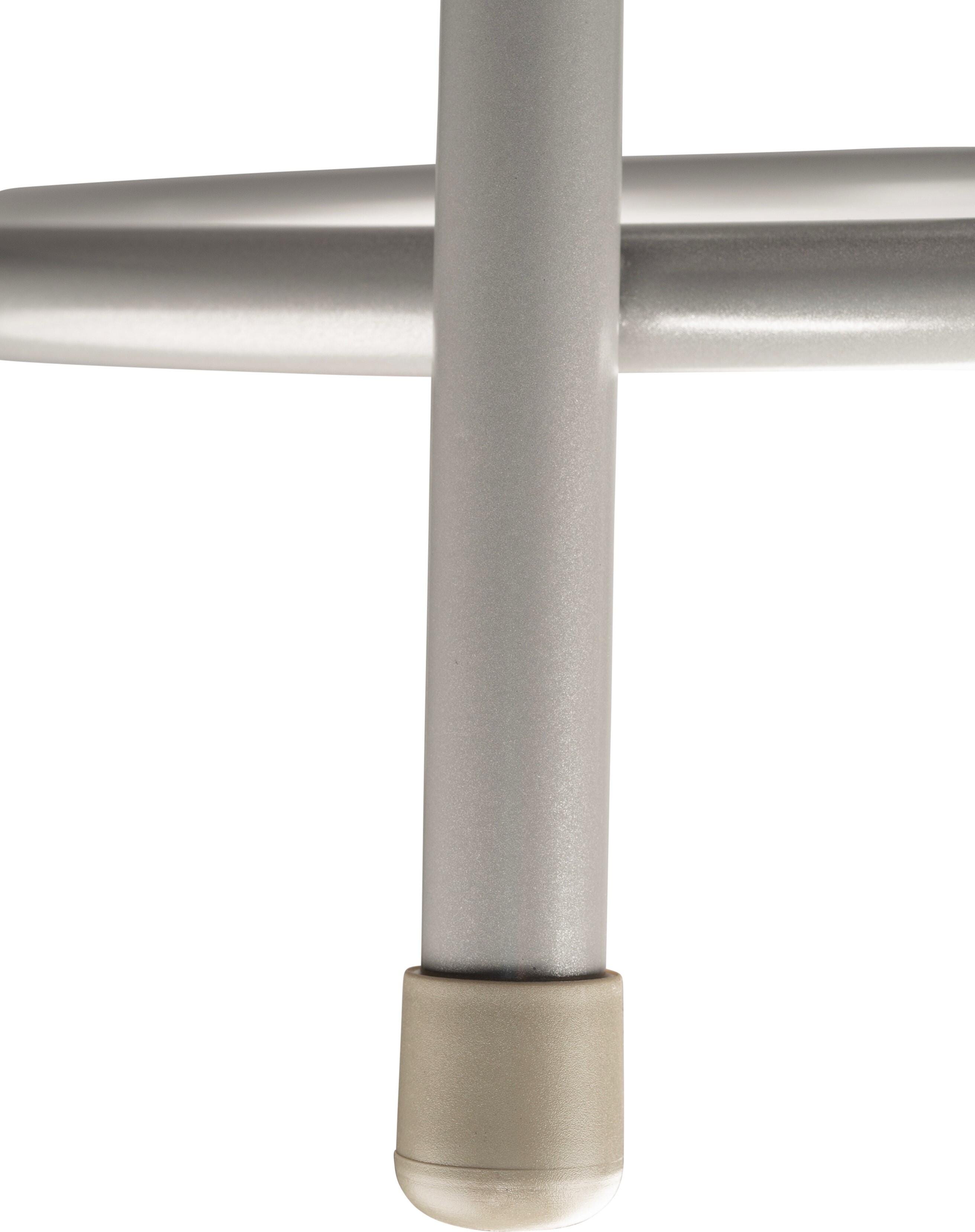 National Public Seating Quality Padded Fixed Height Steel 30 inch Stool with backrest features 18-gauge steel tubing of 7/8 inch OD. Metallic gray stool comes with a 14 inch diameter seat having a gray vinyl padding over steel seat pan.