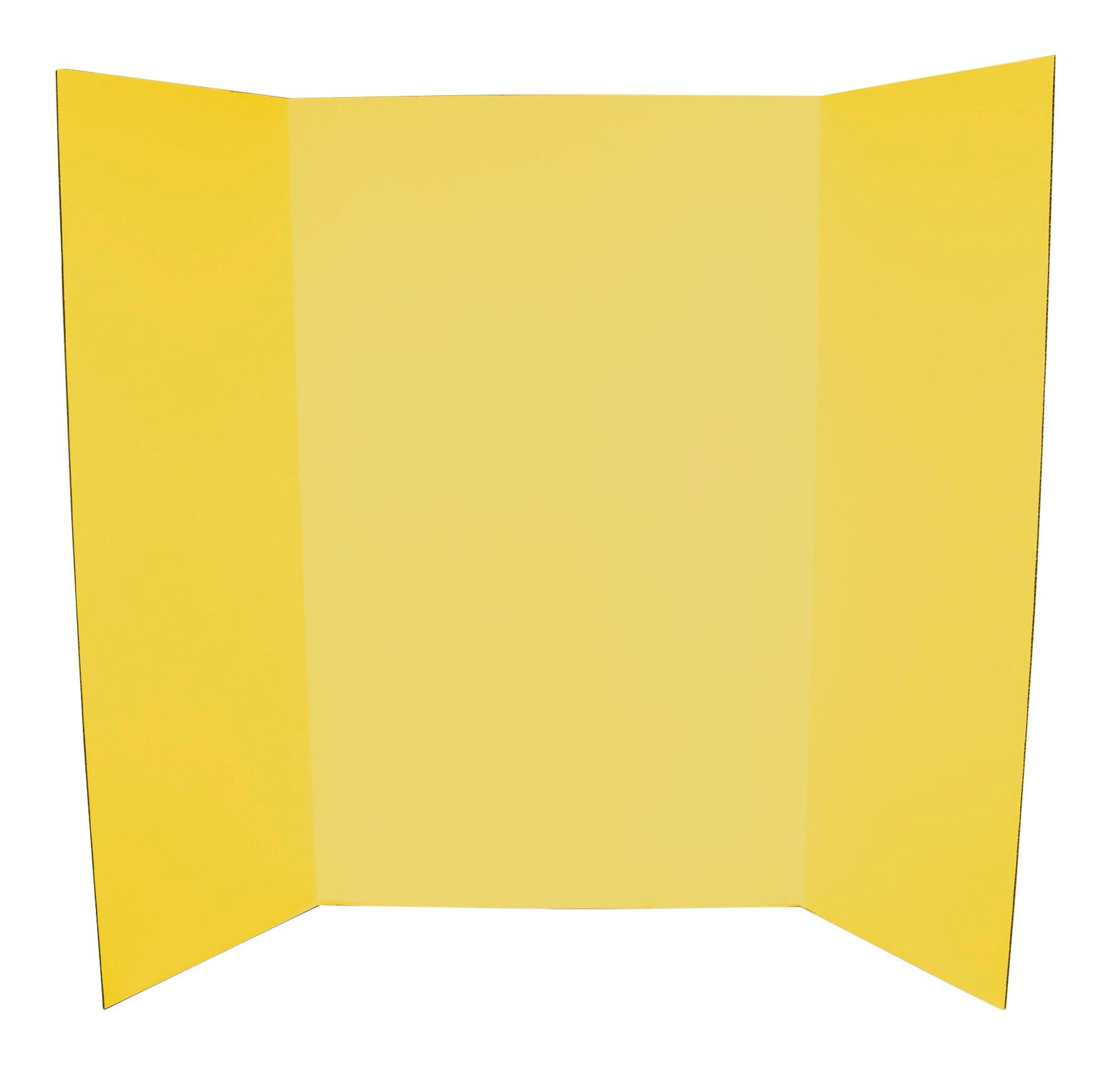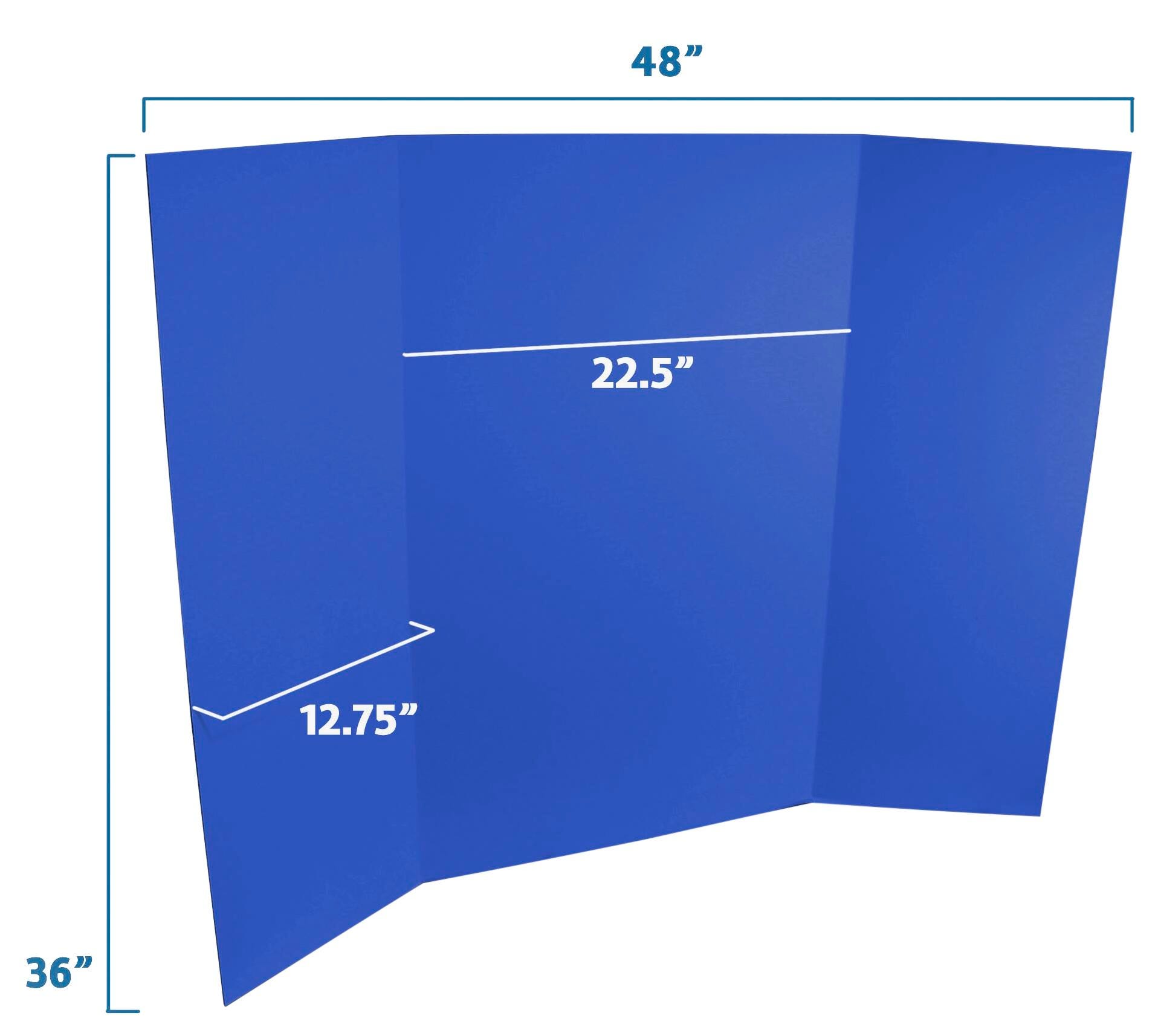These project display boards allow you to customize and easily create a lasting impression. The durable, smooth, bright surface has a slight glossy finish that easily allows markers, glue, paint, and adhesive to adhere and easily be displayed. These project boards are great for science fairs, presentations, picture displays, school projects, and tabletop exhibits. You can easily transport your project board because of the overlapping side panels. These project boards have color on one side and natural brown kraft on the back. Made from 1-ply corrugated paper that is 100% recyclable. Project boards measure 36 inches in Height and 48 inches in Width. Side panels measure 36 inches in Height and 12-3/4 inches in Width. Center panel measures 36 inches in Height and 22-1/2 inches in Width. Primary Color Pack of 4 contains 1 of each board: Blue, Yellow, Red, Green.