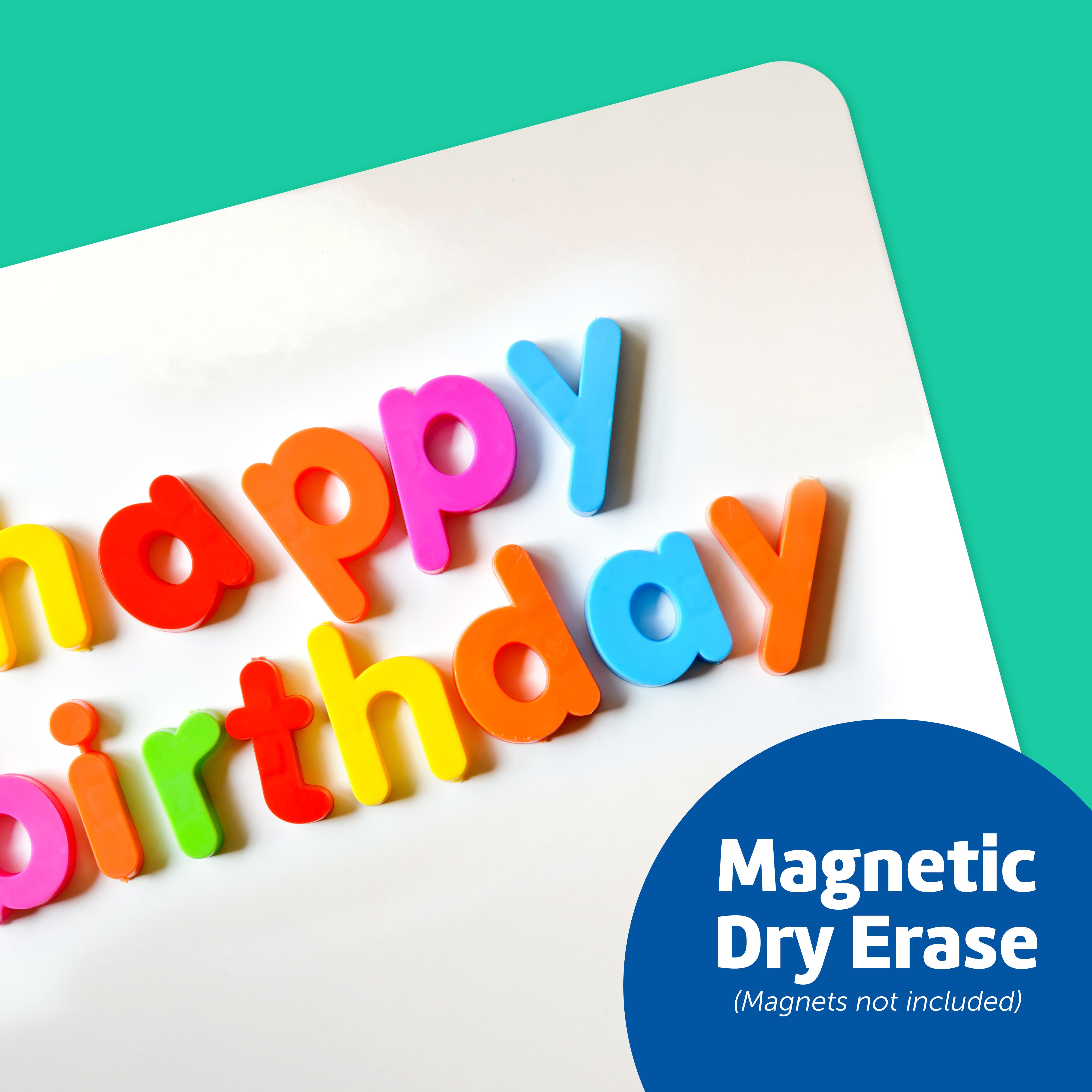 - Magnetic surface lets you utilize magnetic letters or put full board on fridge for easy notes
