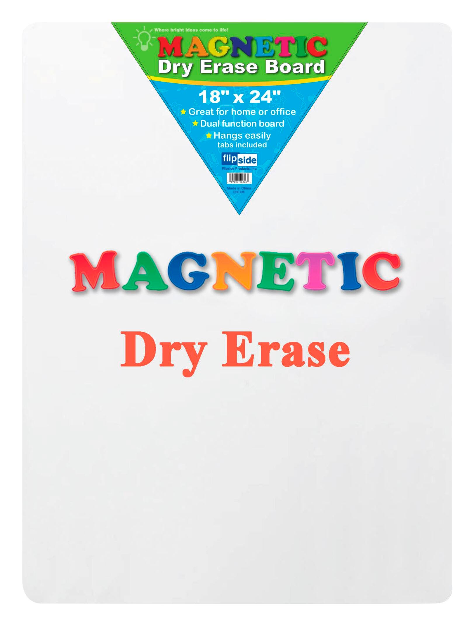 Make everything more fun with Flipside dry erase boards. This economical, unframed board with magnetic-receptive plain dry erase surface is ideal for academic practice, doodling, notes, and activities with magnetic manipulatives! Quality write-and-wipe surface is non-ghosting, while backing is warp and chip-resistant. Adhesive squares are included for the option of mounting. Full board measures 18 x 24 x 1/8 inches.Features