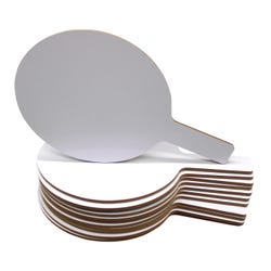 Make learning and collaboration more fun with dry erase paddles! Great for quick and quiet whole class participation for review sessions, surveys, assessments, and beyond, these 7 x 12 x 1/4 inch oval dry erase answer paddles feature high quality, non-ghosting dry erase surfaces front and back, along with an easy-grip handle and smooth edges. Dry erase pens and student erasers are included for instant use. Ages 3 and up.Features