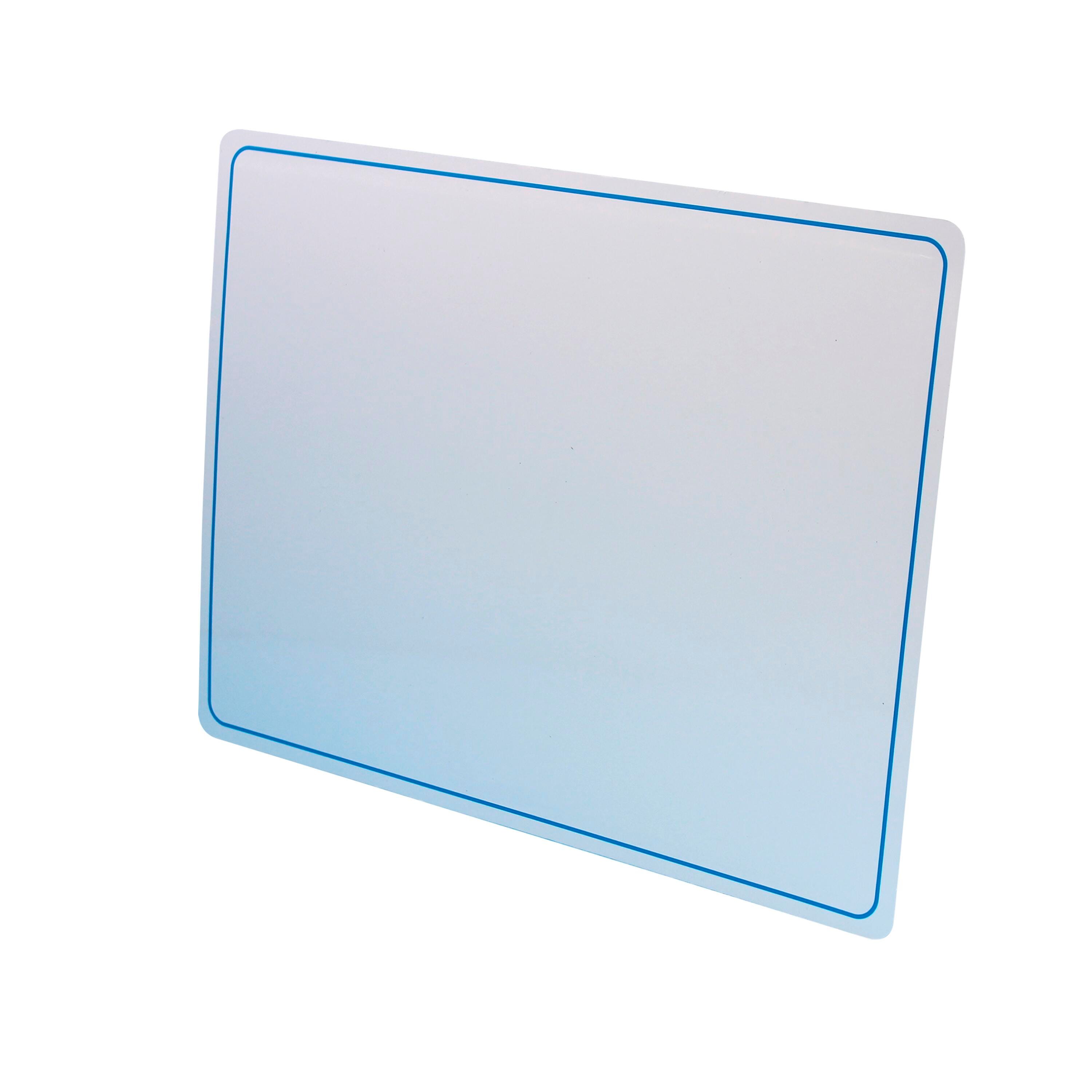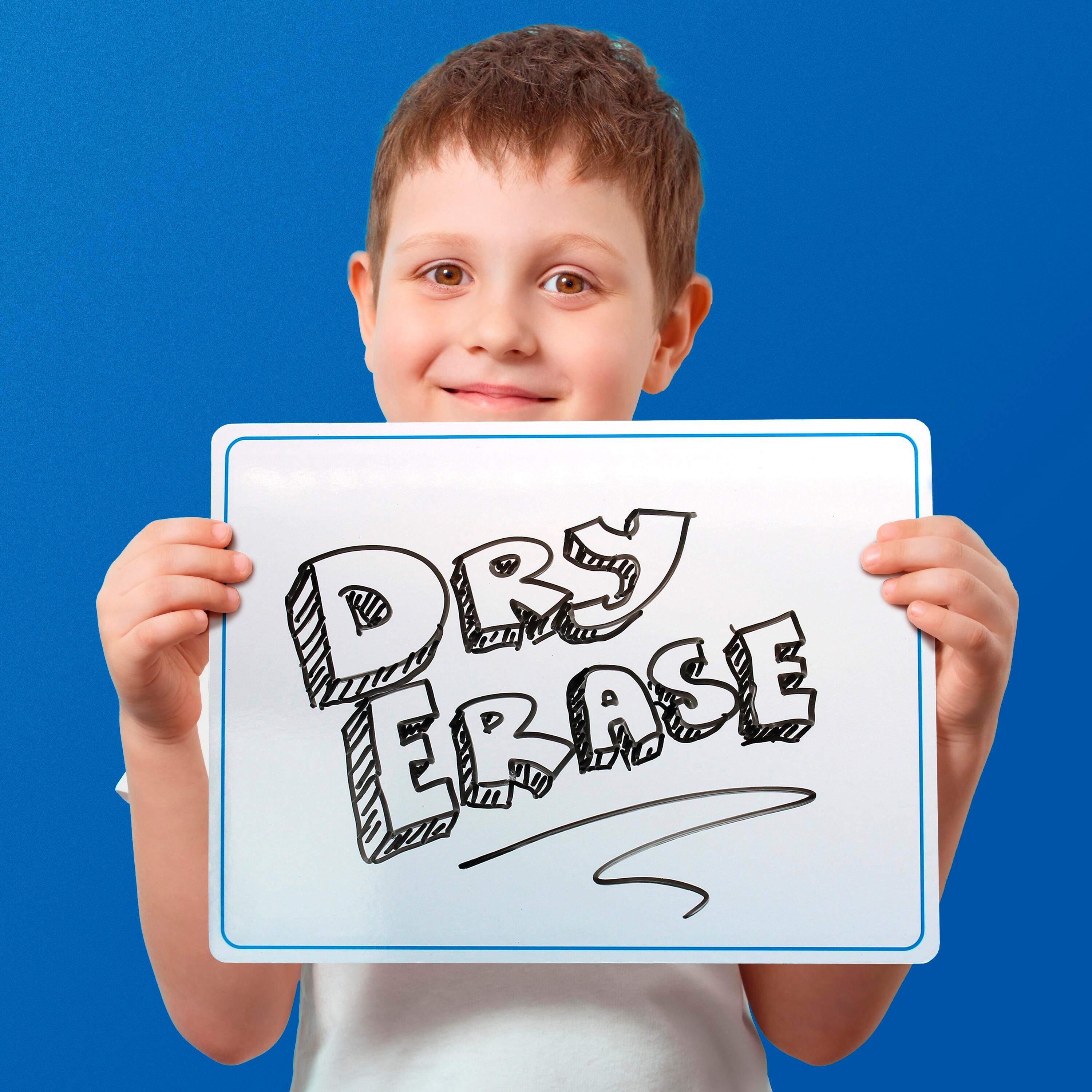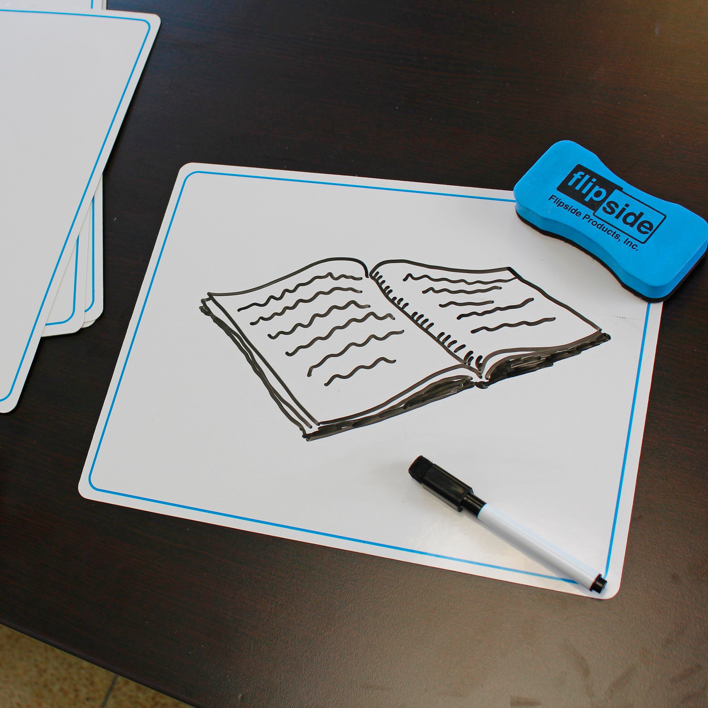 Two-Sided, Plain Dry Erase Learning Mats make everything more fun! The bright white economical sheets feature a bright blue border and plain white dry erase surface on both sides. Flipside Learning Mats are lightweight, making them simple to carry between class and home, plus they're easy to store. The mats feature a high-quality, non-ghosting write-and-wipe surface with smooth, rounded edges and corners. Each sheet measures 9 x 12 inches. Includes 24 individual mats.