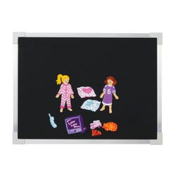 Versatile magnetic activity/flannel board features a magnetic white dry erase surface on one side and a black flannel surface on the reverse. Ideal for learning and creative activities! Aluminum framed has plastic safety corners. Measures 18 x 24 inches.Features