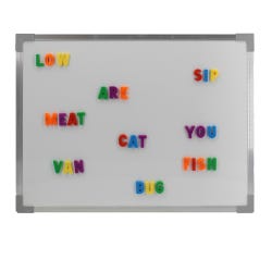Great for both creative activities and learning. Aluminum framed board has a white magnetic dry erase surface on one side and a black flannel surface on the other.