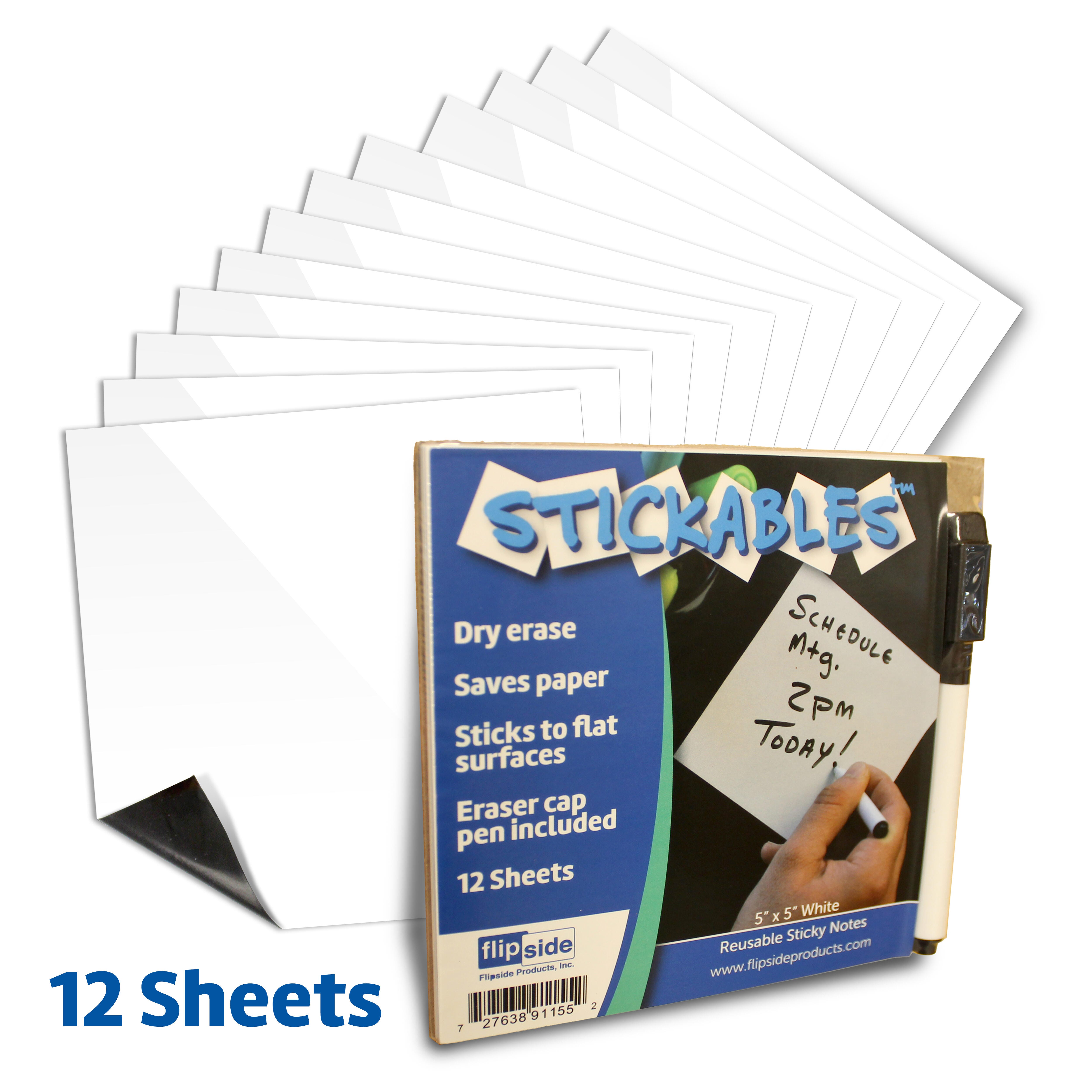 Flipside White Dry Erase Stickables with Dry Erase Marker, 5 x 5 Inches, Pack of 12