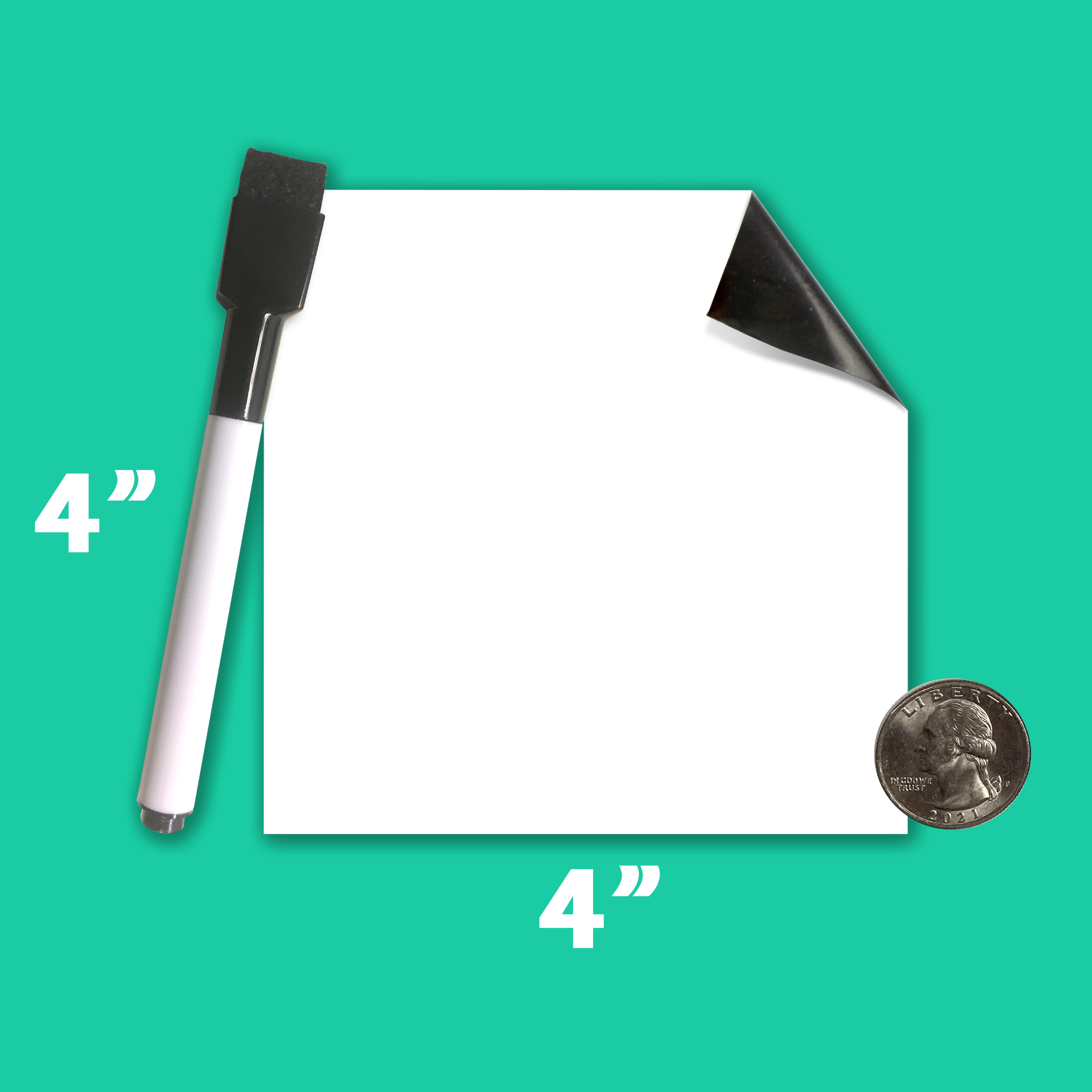 • 4 x 4 inch dry erase repositionable sticky notes with a rubberized polymer to easily reposition and adhere to your preferred smooth surface. Includes a dry erase marker and eraser cap and 12 sticky notes