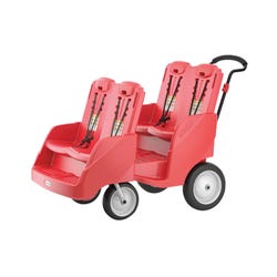 The Foundations Gaggle 4-Passenger Buggy measuring 58 L x 28-1/2 W x 30 H inches has a durable, double-walled construction that offers superior strength. It is corrosion, and impact resistant. It has solid steel powder-coated integrated frame that offers durable, long-lasting strength. It comes with ergonomically contoured seats that are designed with high back seats and a slip-resistant surface to secure children in place. This Buggy has polyurethane tires that offer a quiet ride while preventing the need to inflate with air. It has a comfortable foam-wrapped push bar that eliminates hand fatigue and easily fits through a standard-size doorway. Buggy includes easy load steps and handles that are sized for children's hands and feet for easy self-loading.Features