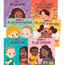Centered around a class of preschoolers, the We Say What’s Okay series helps teach young children the social and emotional skills they need to understand the complexities of consent. Each book covers a consent theme, such as how to recognize the physical sensations that emotions create, look for body language cues, ask for and listen to choices, and know that our bodies have value. With believable, everyday situations and diverse characters, children can see themselves and others reflected in each story—and develop a vocabulary to communicate consent and feelings. Every book in the series is accompanied by a song from Peaceful Schools with downloadable audio files and sheet music. Please note: these books utilize the proper terms for various body parts.Features