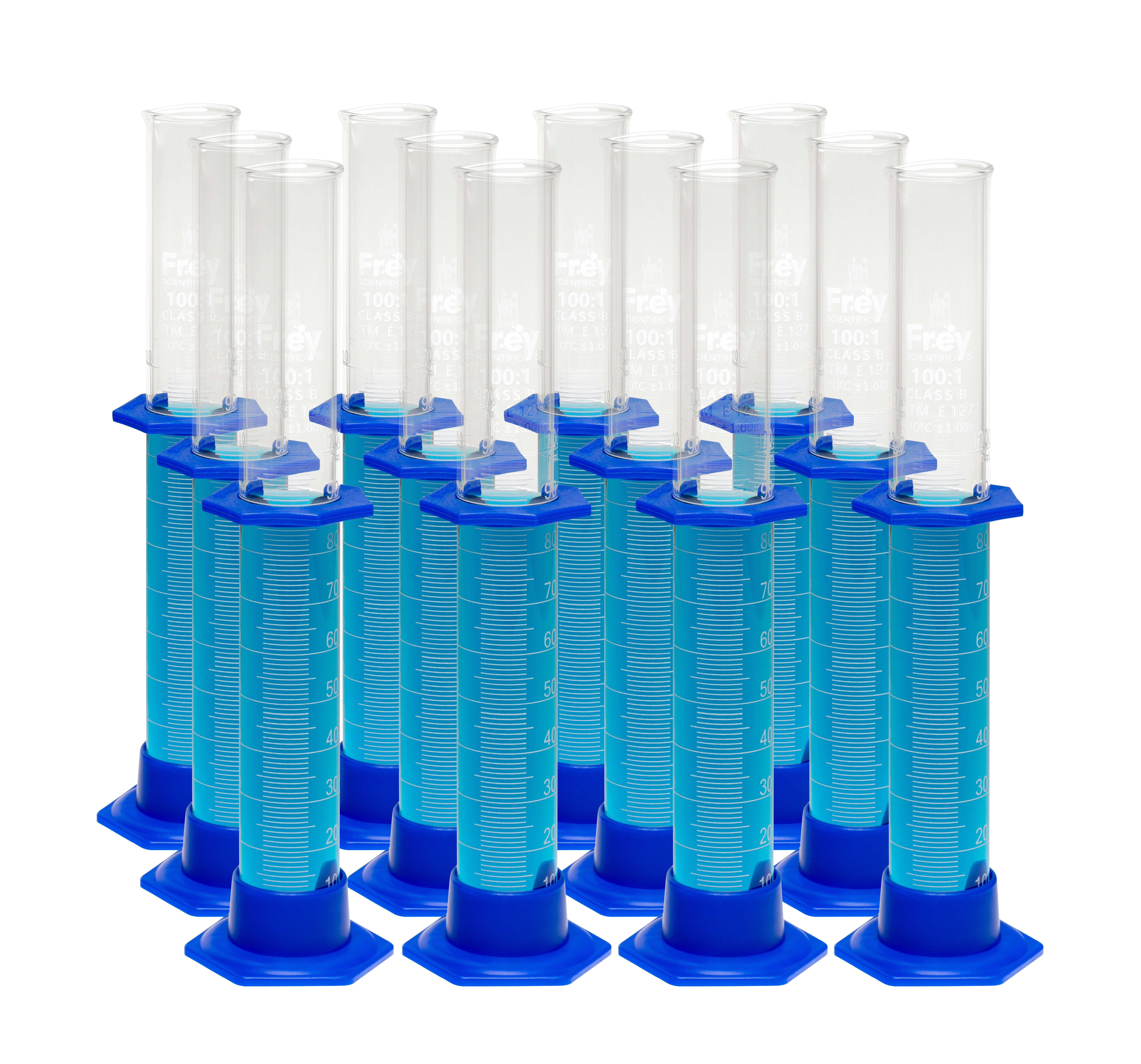 Frey Scientific Borosilicate Glass Cylinders with Plastic Bases, 100 mL, Pack of 12