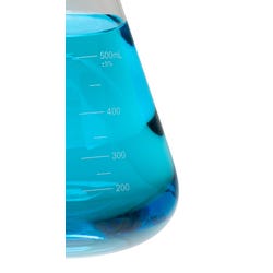 These borosilicate glass flasks from Frey Scientific are designed to give the best combination of thermal shock resistance and physical strength. Use them to measure, mix, and pour liquids for scientific experiments and research in classrooms and labs. This pack contains 6 flasks with a capacity of 500 mL each.Features