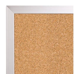 Natural cork tackboard offers excellent resiliency and tack holding properties. It is factory framed with a durable anodized aluminum trim that features a hairline miter corner for a tight fit and a clean appearance.