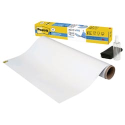 Post-it Super Sticky Dry Erase Surface Roll transforms painted dry wall, glass, painted steel, finished wood or even old dry erase and chalkboards into a dry erase surface. Roll easily turns vertical and horizontal surfaces into dry erase surfaces. Peel and stick construction sticks securely and removes cleanly. Features stain-proof technology, high-performance surface and provides great writability and erasability.Features
