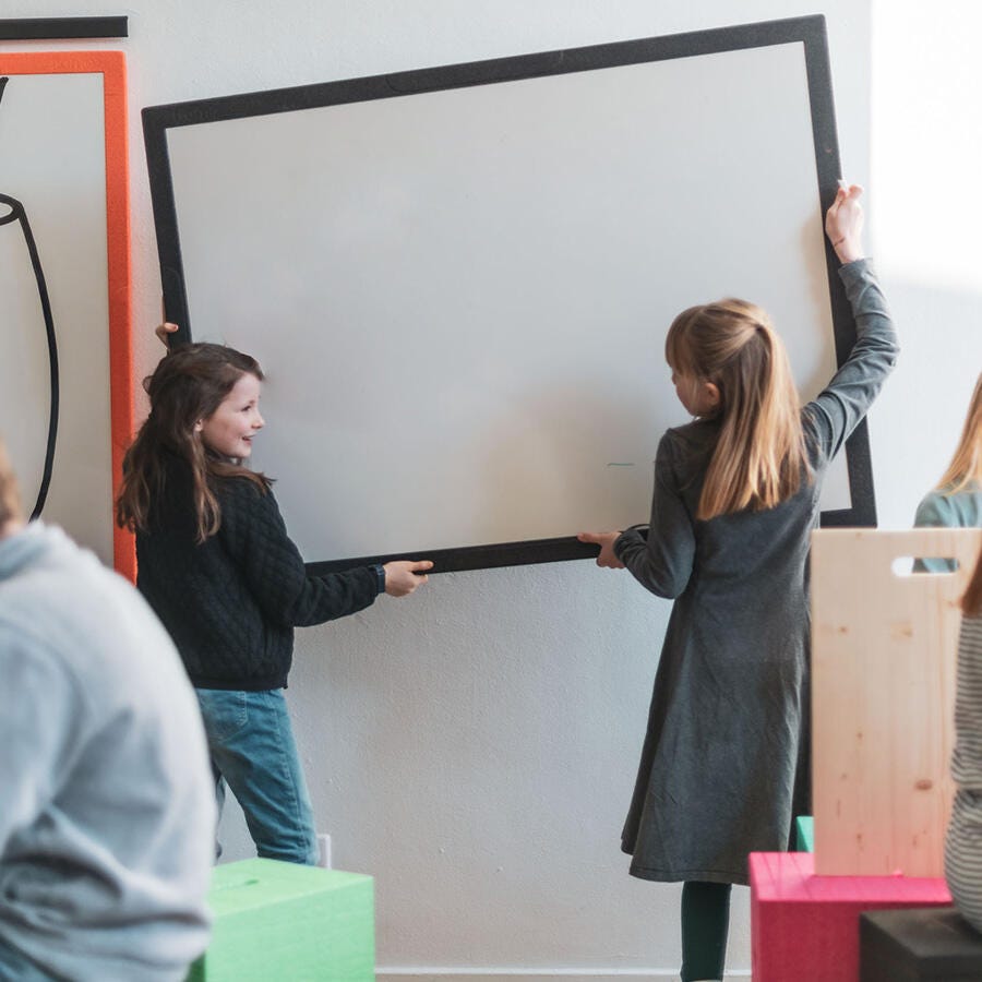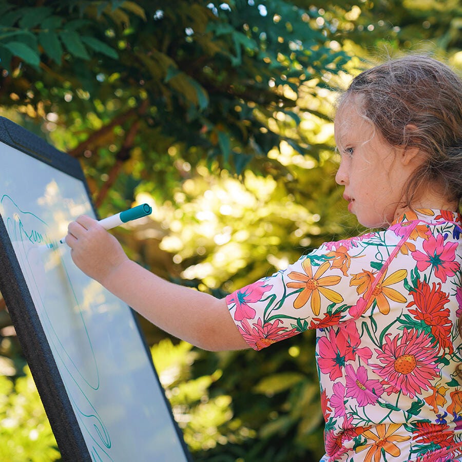 Lightweight yet durable, Flomo features a magnetic dry-erase surface and shock-resistant frame that's perfect for classrooms, outdoor learning, and flexible learning spaces. Easily carried by hand or mounted to windows, magnetic structures trees, fences, or walls using straps. Flomo supports creative thinking wherever students and educators go. Weighs 13 pounds. Measures 37 W x 50-1/2 H inches.