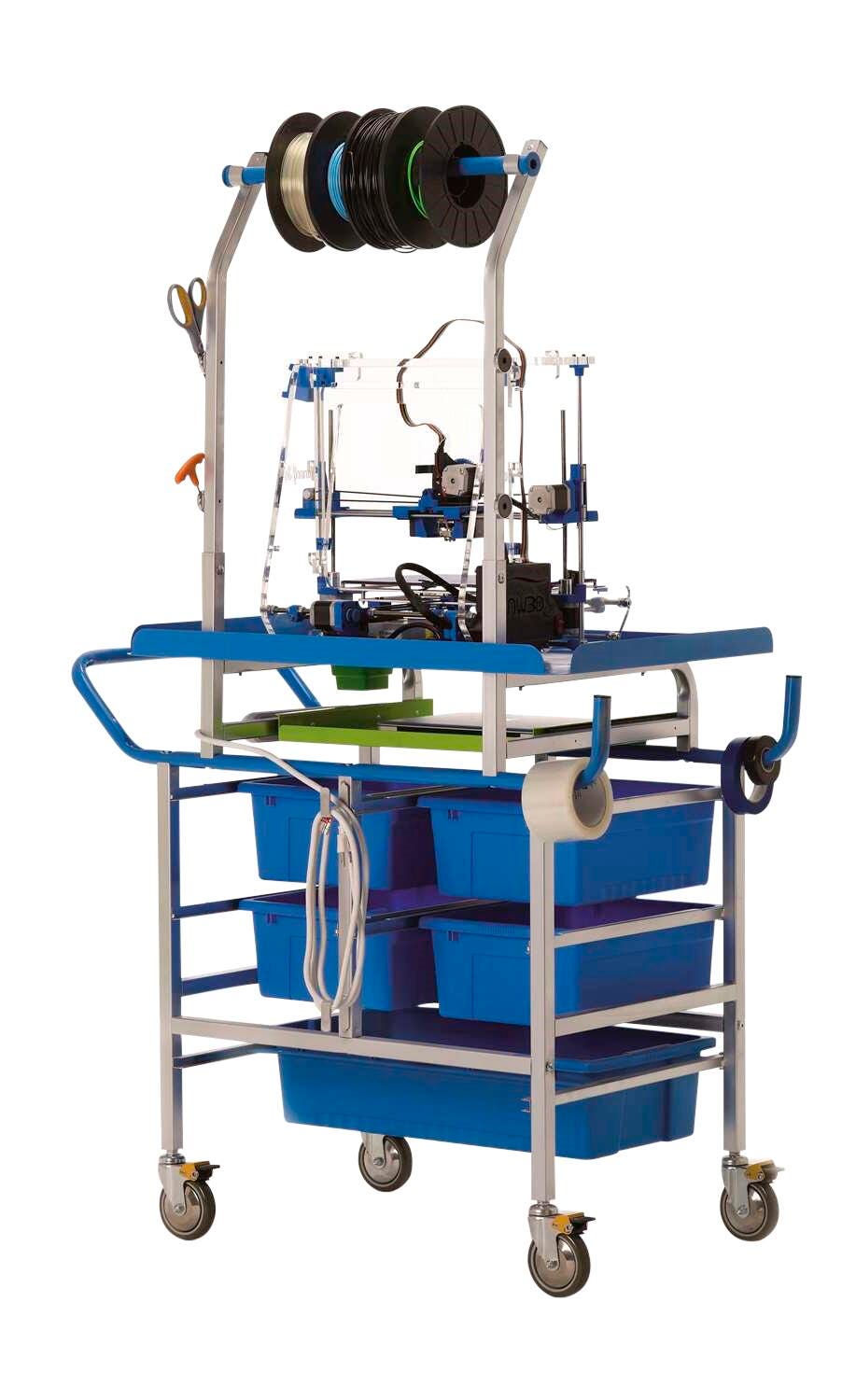 The perfect mobile storage solution for your 3D printing needs, with space to store everything you need to create your next 3D masterpiece! Made mobile on lockable rolling casters to transport from classrom to artroom with ease.