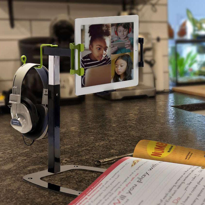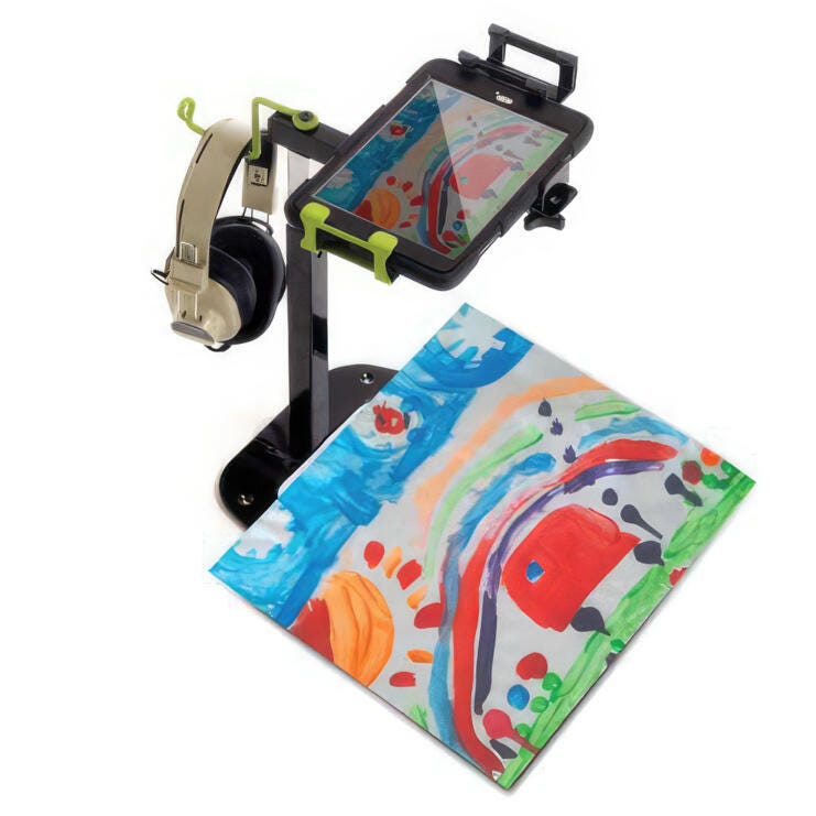 Copernicus Dewey the Document Camera Stand provides teachers and students with the opportunity to share work, ideas and anything else that inspires. This high quality stand turns your iPad into a document camera by utilizing the iPad's camera. Spring loaded clamps hold all versions of iPad® with a camera and various smartphones with or without cases (excludes 13 inch iPad Pro). Height adjustable with 90 degree rotating mount that swivels and tilts, keeping the device secure. Features headphone holder and mounting holes on the base for security.