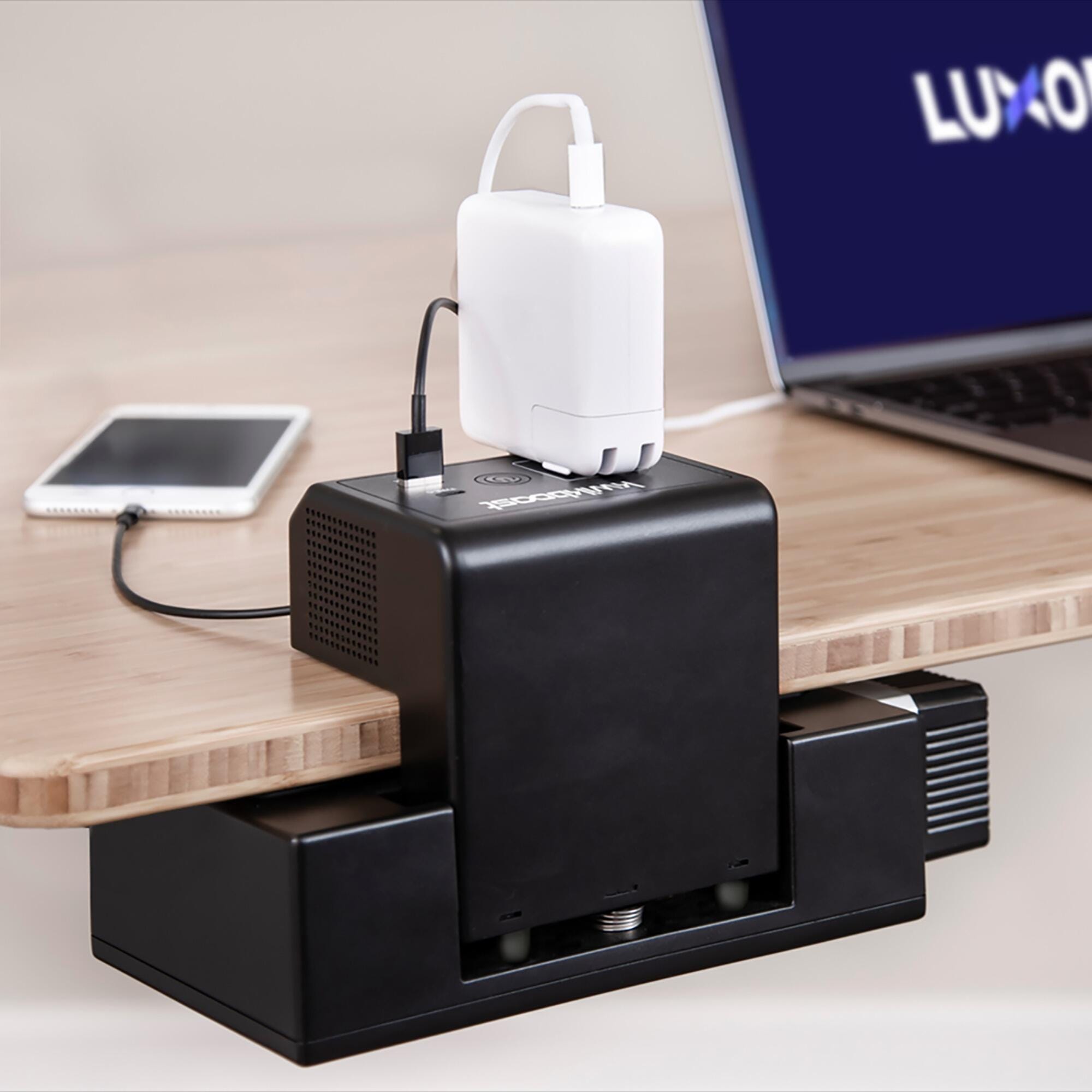 - Each Clamp-On Desktop Charging Unit offers a standard AC outlet, a USB-A charging port, and a USB-C PD charging port