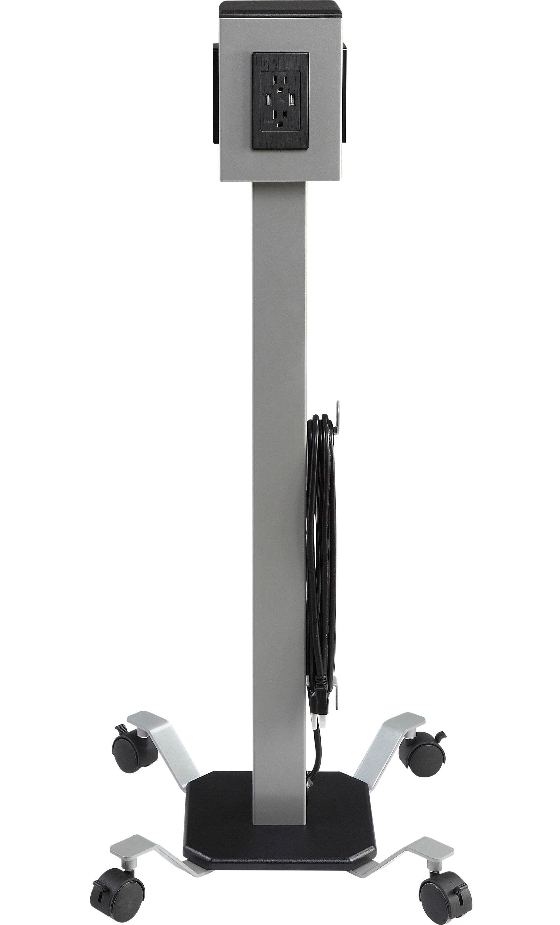 Mobile Power Tower delivers flexible options for your team. It includes eight AC outlets and eight USB outlets. Durable steel frame includes a cord winder for 10 foot power cable with a three prong plug. Four lockable wheel casters roll smoothly to move the tower where you need it most. 5 year limited warranty.