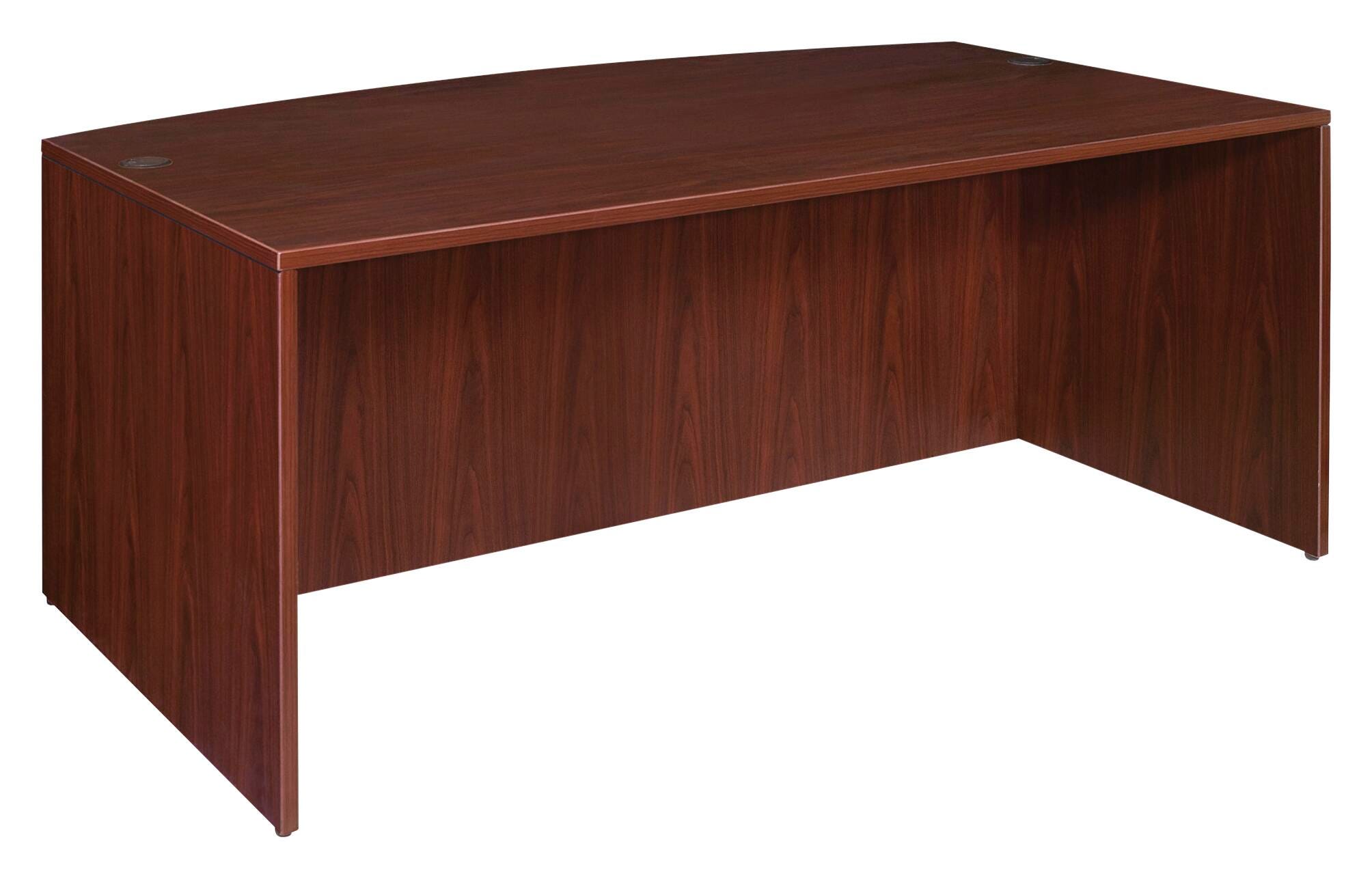 The bowfront desk shell is part of Classroom Select Series Laminate Furniture with high-quality laminate construction and metal-to-metal, cam-lock connections. The Mahogany laminate top is 1-inch thick for durability. You can use the two grommet holes in the top for easy cord routing, and the design also includes a full modesty panel for privacy, 3-millimeter PVC edges, and adjustable feet.Features