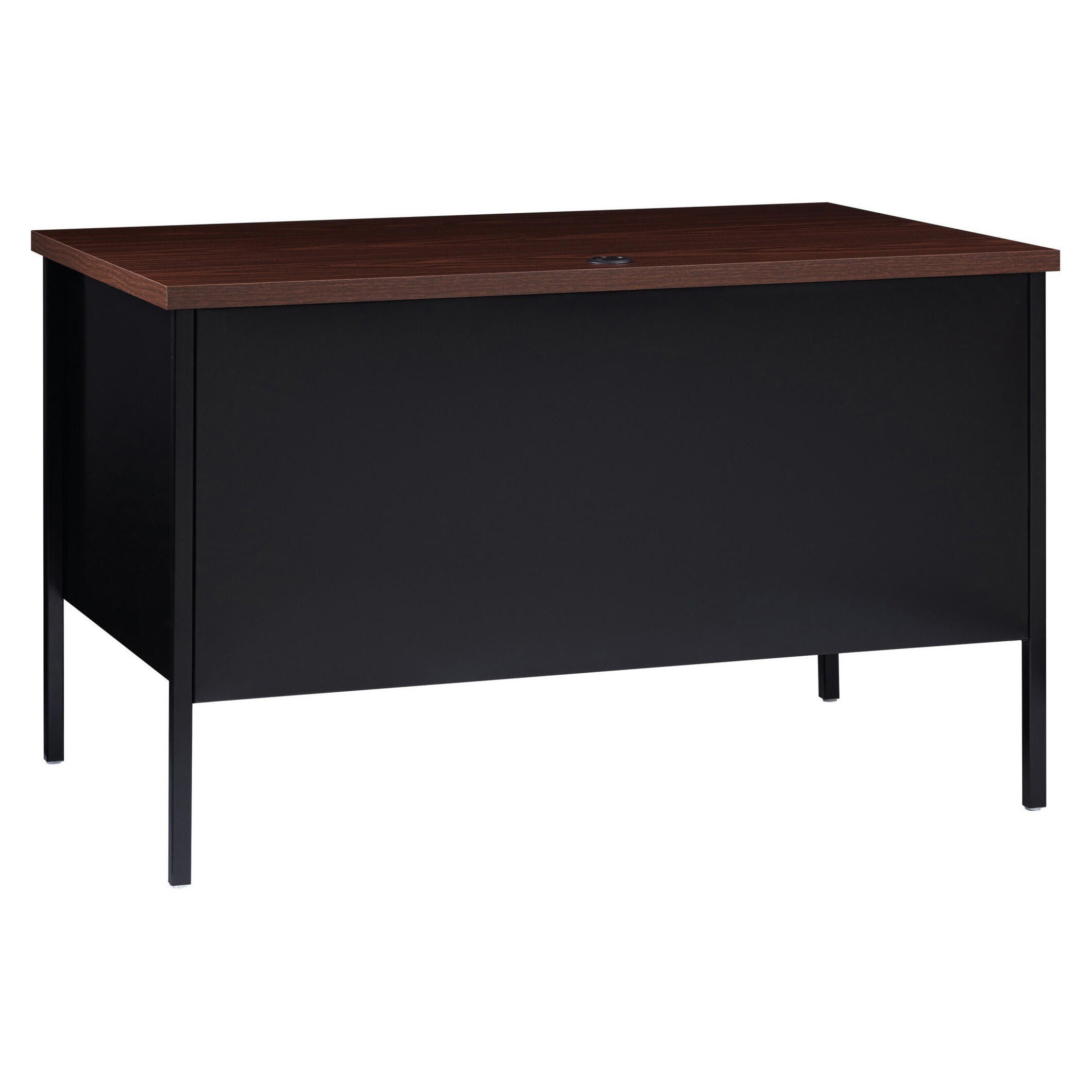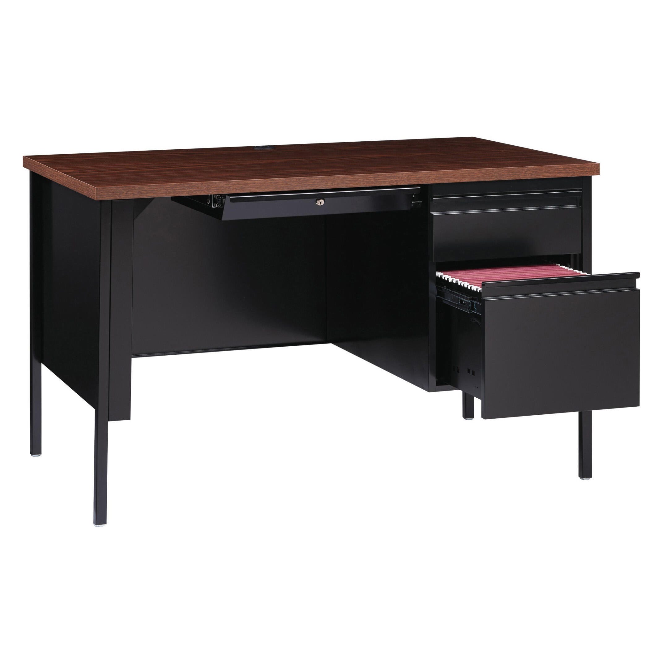 Fortress Series Desking offers a practical and professional desk solution ideal for a durable teacher's desk or office desk. Desks are also equipped 3/4 modesty panels and box/file pedestals with full-extension, ball-bearing slides, and a locking center drawer. Integrated drawer pulls are full-width. Central-locking center drawer on desks includes a core-removable lock. Reinforced, double-frame inner structure keeps desk solid and sturdy for years of use. Measures 45-1/2 W x 24 D x 29-1/2 H inches.