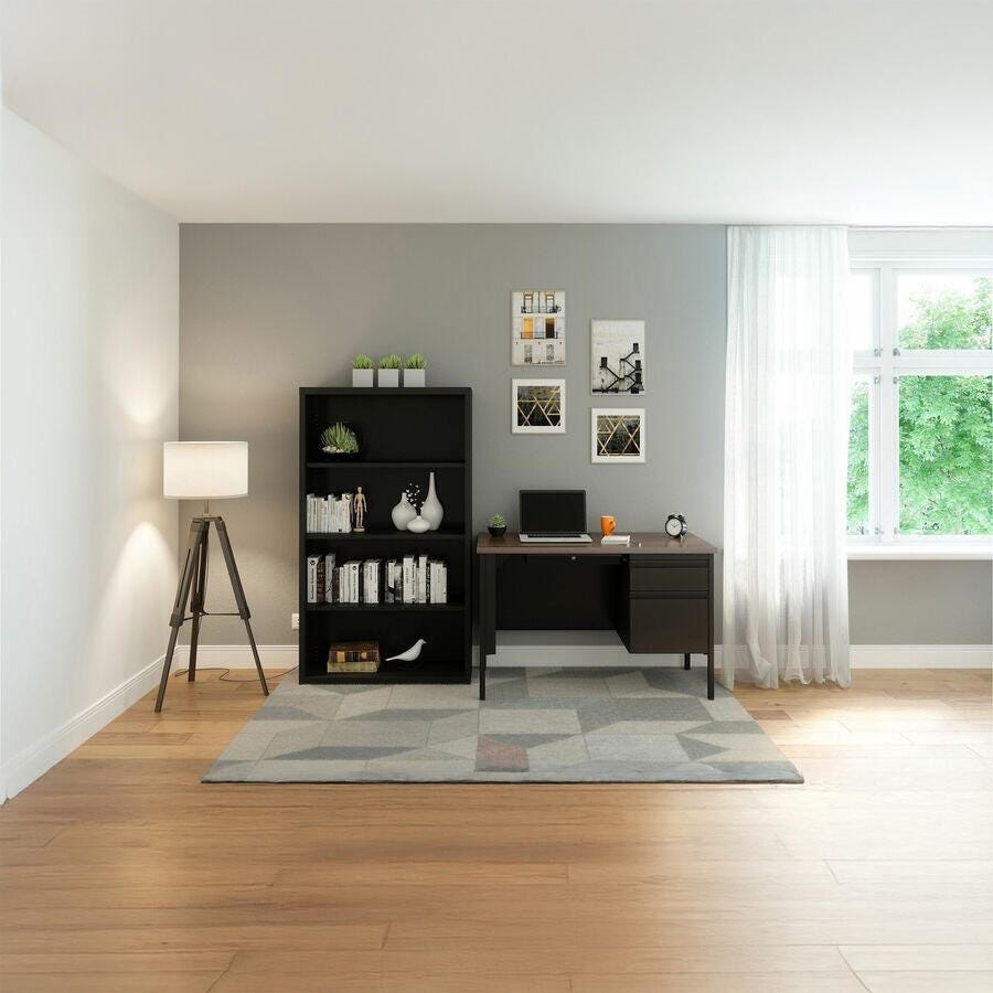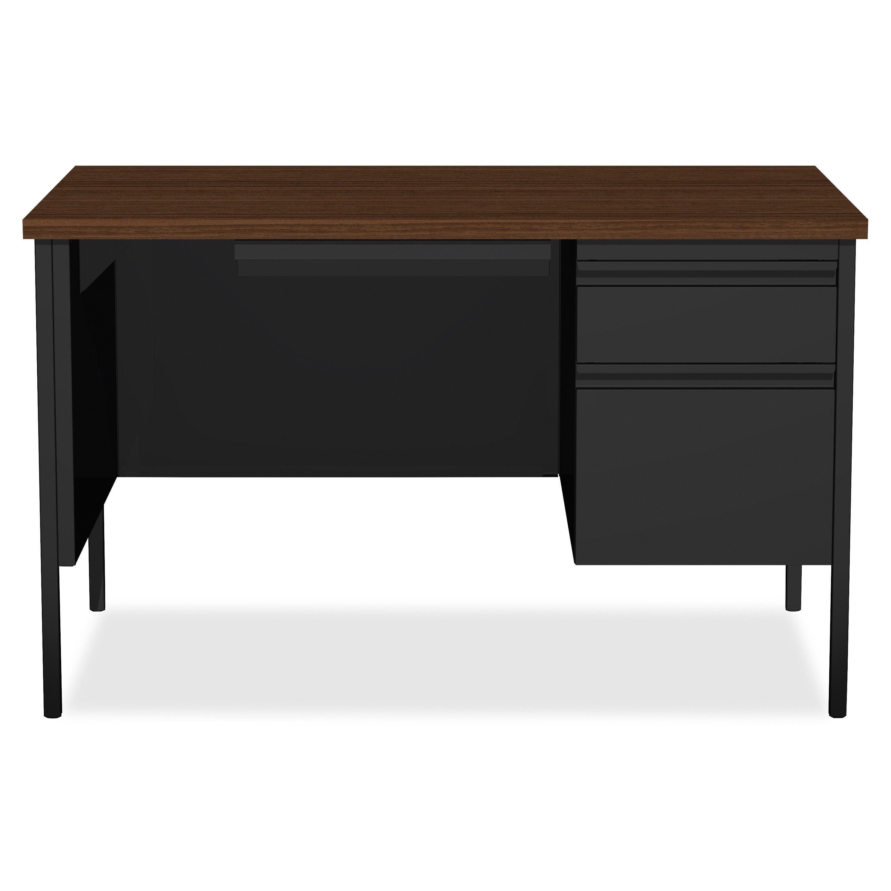 Lorell Fortress Series Walnut Laminate Top Desk, Right Pedestal Desk, Steel, 45-1/2 x 24 x 29-1/2 Inches, Walnut/Black