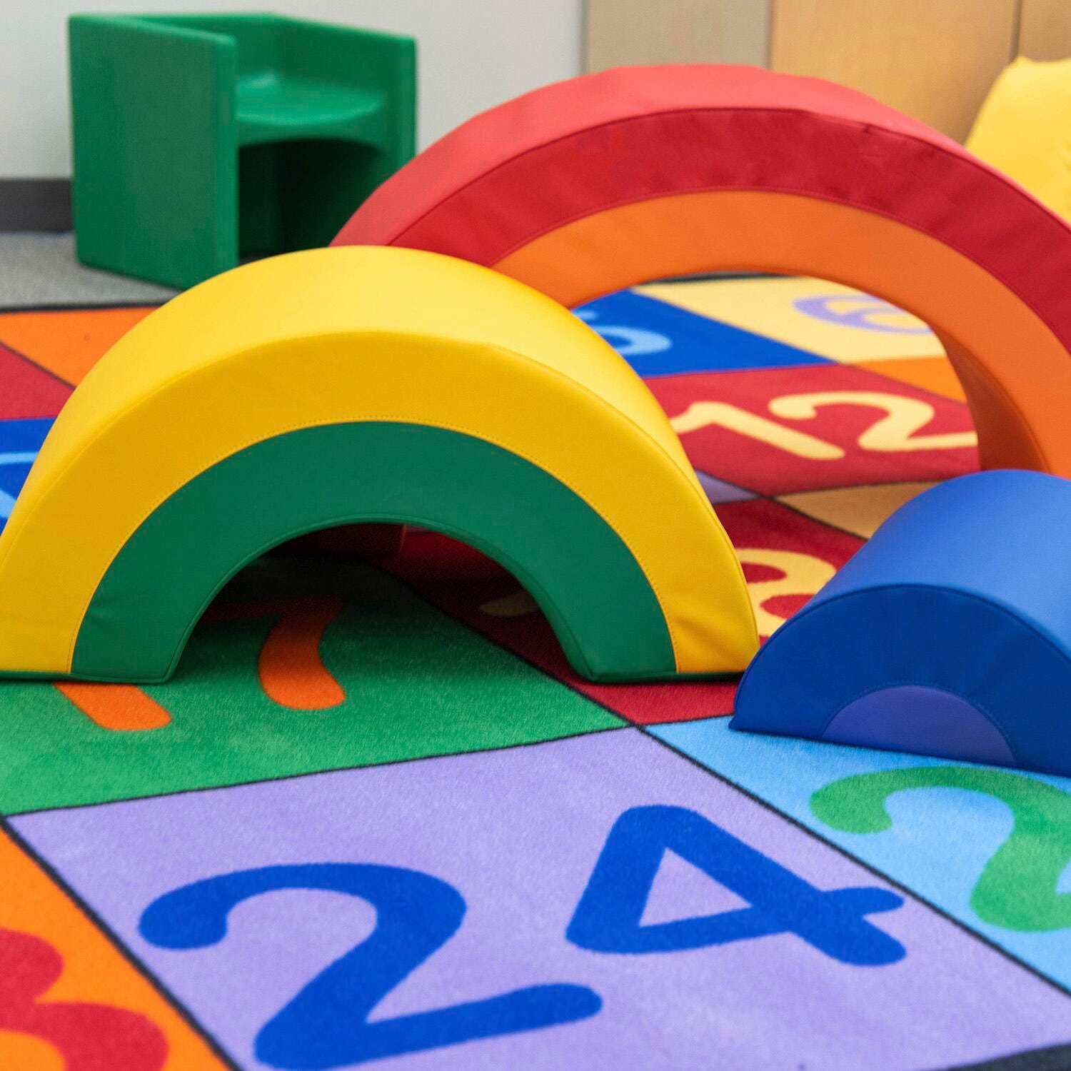 Brighten up any active play area with the Children's Factory Rainbow Arch Trio. This 3-piece soft play set features three lightweight, foam-filled arches in vibrant rainbow colors that spark creativity and encourage physical activity. Designed to support gross motor skill development, these versatile arches can be climbed over, crawled under, or used for imaginative play setups. Perfect for preschools, daycare centers, therapy rooms, and home learning environments, the Rainbow Arch Trio provides a safe and inviting way for young children to build strength, coordination, and confidence.Features