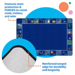 Childcraft® Alphabet Fun Educational Carpet comes in a rectangular shape with an alphabet border, and convenient sitting squares for young children and students. Perfect for storytime, playtime, and quiet time, this fun ABC carpet features lowercase and uppercase letters and images that coincide to promote letter recognition. Our sitting carpet is made of high-quality materials to create a comfortable and durable space. Each Childcraft carpet is performance tested for durability, color fastness, and stain and soil resistance for quality you can trust.Features