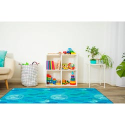 This classroom rug is designed with peaceful blue hues paired with organic leaves create an organic and natural design for any space. This classroom carpet creates a calming space for students, whether this is used as a functional seating carpet for circle time or story time and aesthetic area rug. This rectangle carpet allows plenty of space for students to sit, and is available in several sizes to best fit your dynamic space. For the perfect calming floor covering, look no further.Features