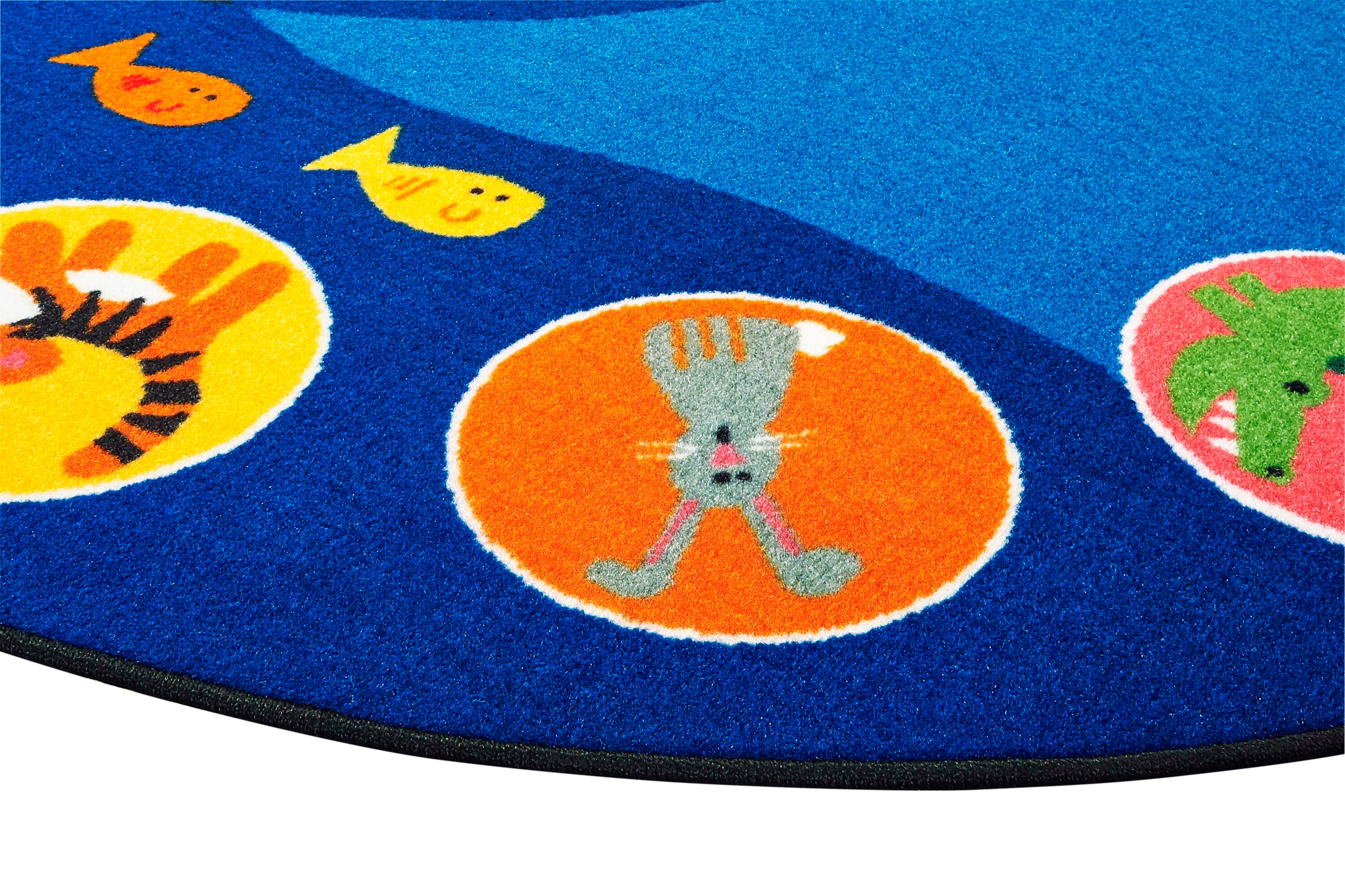 Children will have fun identifying 20 adorable animals aboard Noah's Ark. With plenty of wiggle room between the spaces, this carpet will be perfect as a seating carpet for group activities or as a bright area rug to decorate your space! Perfect for classrooms, playrooms, childcare centers, and preschools. Made with true stain blocker technology that makes for easy clean-up using only hot water extraction with no harsh chemicals necessary. All of the fibers are completely saturated with the stain treatment. Available in several sizes to best fit your space. Please select the size that fits your space best when ordering.