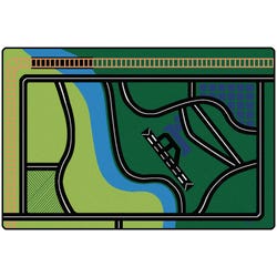 Carpets for Kids® Rectangle Transportation Fun carpet measuring 6 feet x 9 feet allows children to drive from the city to the country. Cool road carpets will reach the imaginations of kids as they play and make their own adventures. The true stain blocker technology makes clean-up a cinch using only hot water extraction with no harsh chemicals necessary. All of the fibers are completely saturated with the stain treatment. Tested to ensure carpets provide a safe area for children to learn and play while supporting your efforts to provide a clean and healthy environment.Features