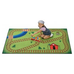Carpets for Kids KID$Value Railroad Playtime Rug is an exceptionally designed and high-quality offering in the affordable line of KID$Value Rugs. They are made to endure the rigorous play of the classroom, playroom, and care center.
