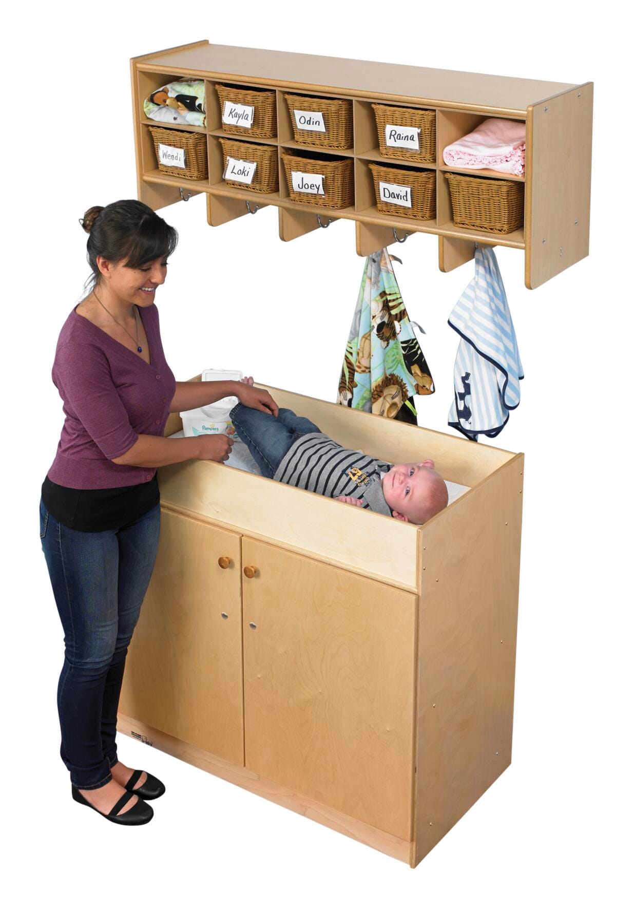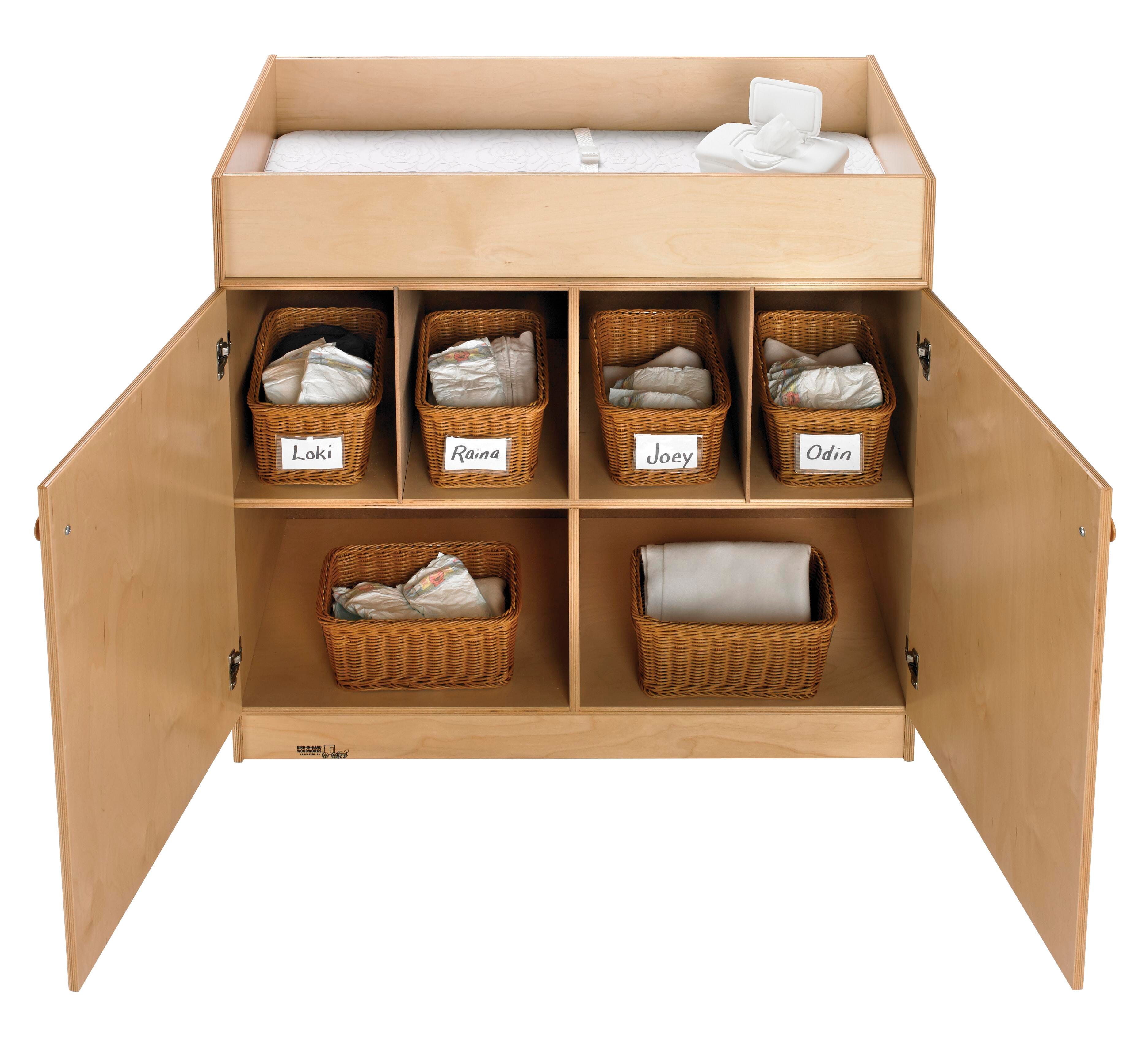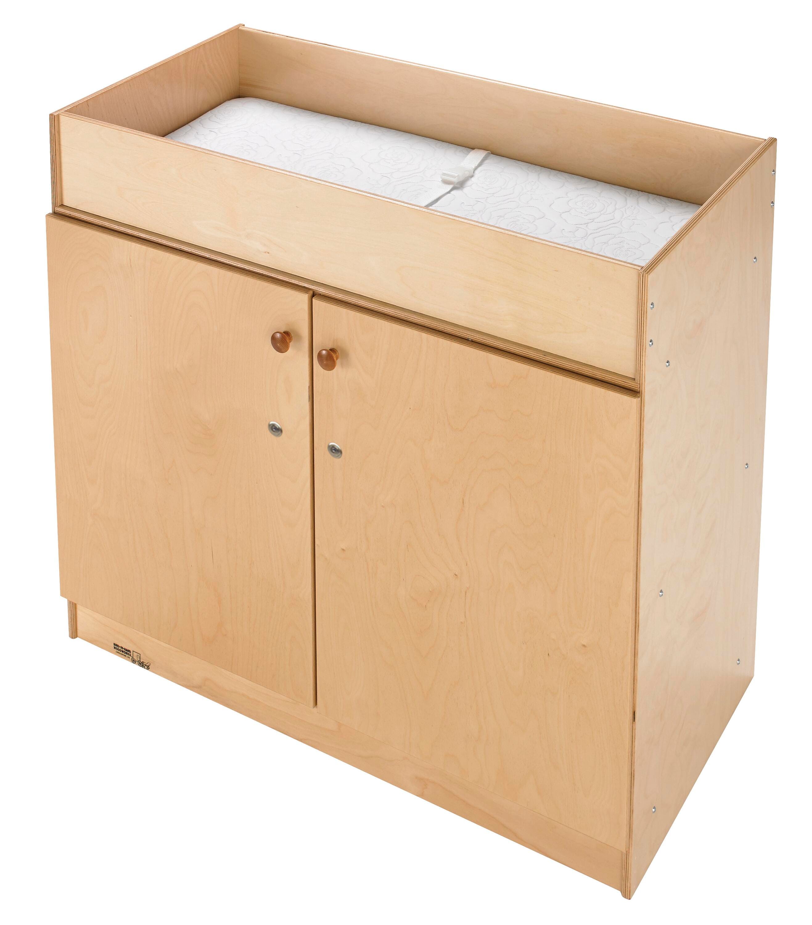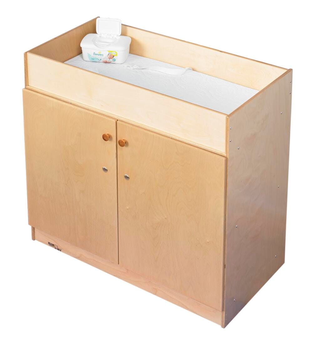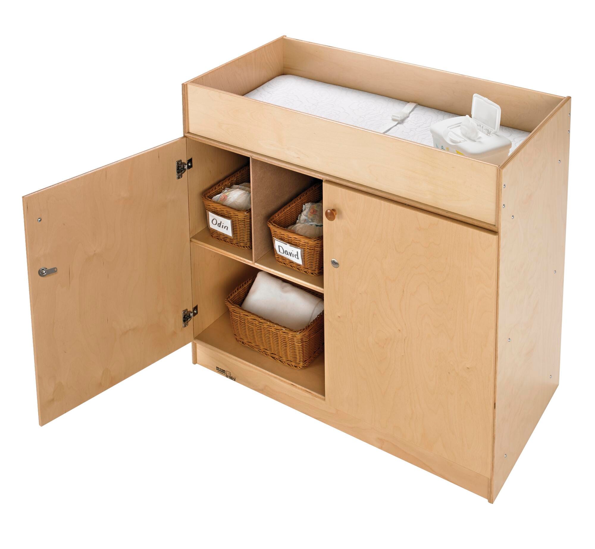 Keep changing supplies organized and out of sight with this secure and functional changing table for classrooms, nurseries, and childcare centers.