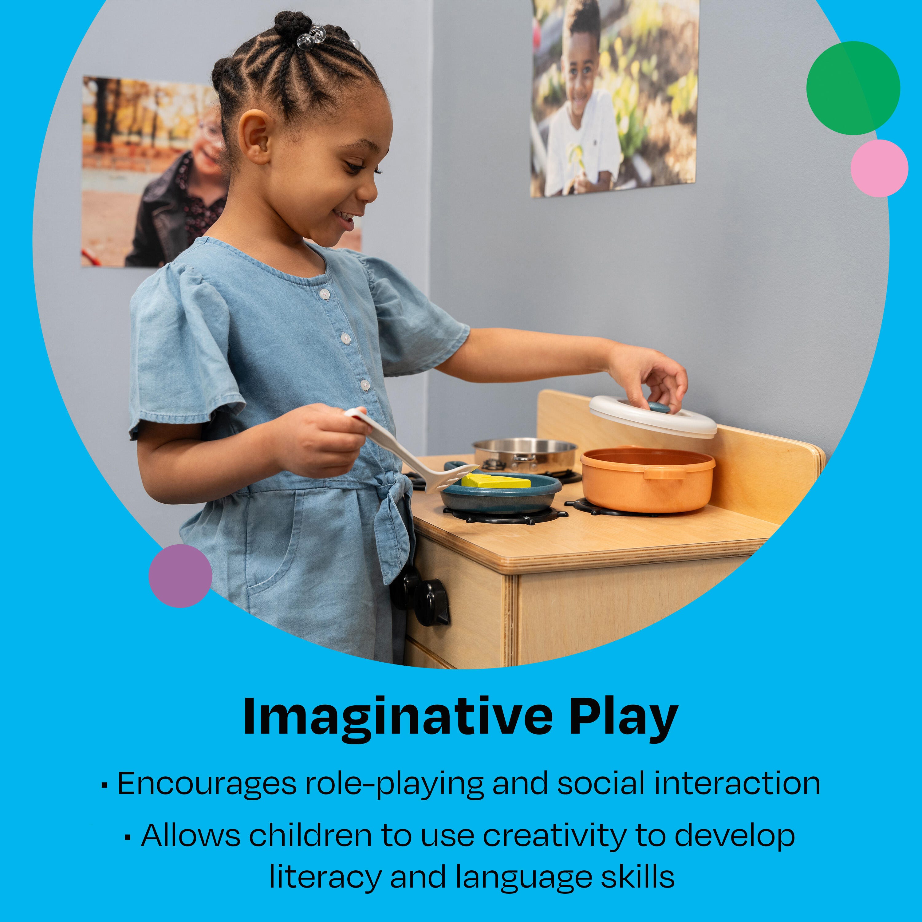 Realistic children’s play kitchen furniture encourages social interaction and learning