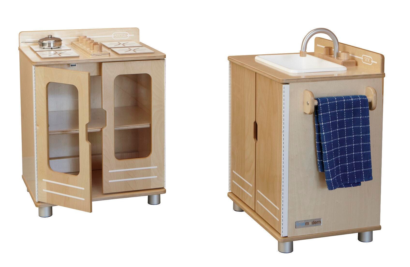 Jonti-Craft TrueModern Play Kitchen Stove, Baltic Birch, Aluminum Feet, 20 x 15 x 25 Inches