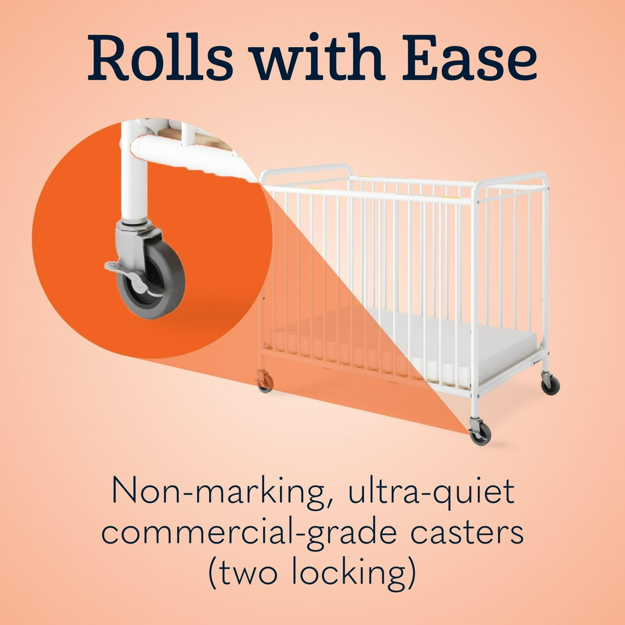 Foundations Chelsea Clearview Crib is non-porous, easy to clean, comes with a powder-coated finish that resists corrosion and scratches. Clear view crib is constructed of heavy duty steel utilizing a 360 degree welding process for superior, long-lasting strength. Crib features 2 height adjustable mattress board allowing it to be used as a bassinet while providing easy access to infants. Crib features 3-inch mattress, reinforced floorboards and oversized 2 locking casters for evacuation purposes.Features
