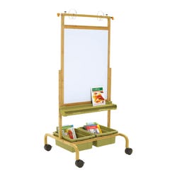 Copernicus bamboo chart stands are a more sustainable choice than metal with a smaller carbon footprint. Bamboo is a renewable resource that grows quickly and absorbs carbon, unlike steel which produces carbon. For every bamboo product purchased, Copernicus will make a donation to conserve natural panda habitat through the World Wildlife Fund. This height-adjustable multi-purpose chart stand has a natural aesthetic better suited for neutral and early childhood environments. It can hang both chart paper and pocket charts along with the ability to adjust the height of the whiteboard. This double-sided, magnetic, dry-erase easel is a valuable tool for group and independent activities. Available in Sage or Vibrant color combinations.Features