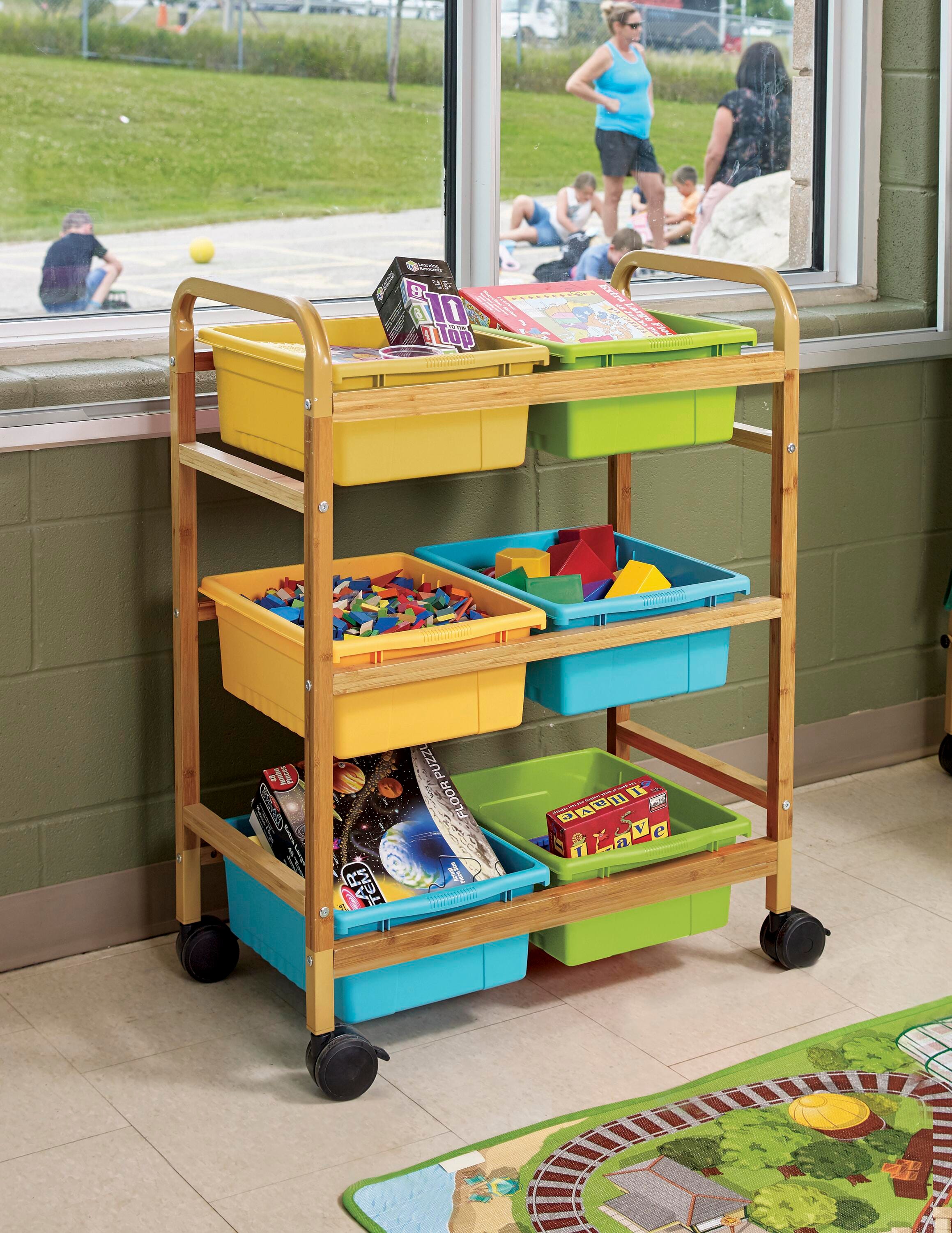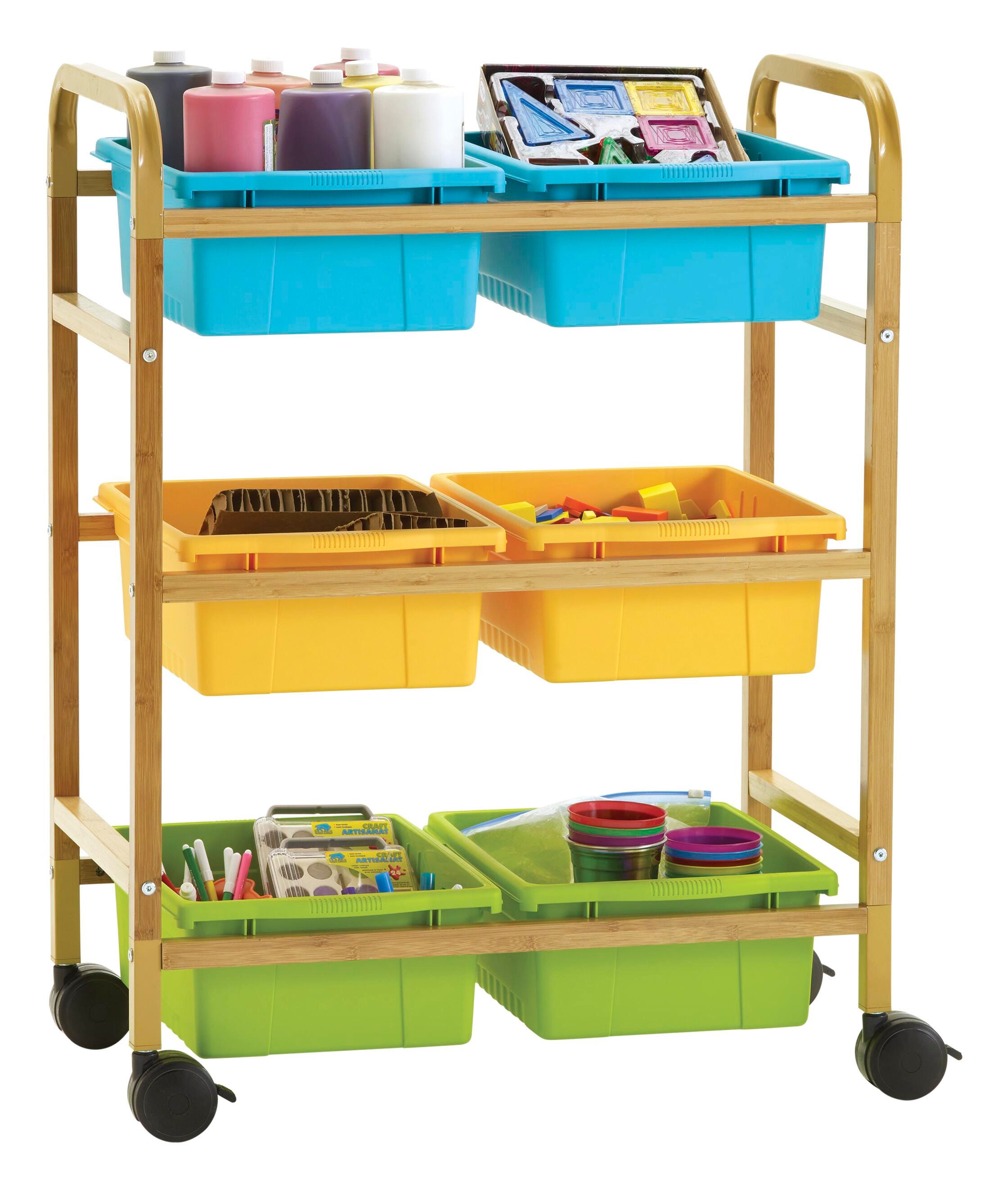 Copernicus bamboo carts are a more sustainable choice than metal models because they have a smaller carbon footprint. Bamboo is a renewable resource that grows quickly and absorbs carbon, unlike steel which produces carbon. For every bamboo product purchased, Copernicus will make a donation to conserve natural panda habitat through the World Wildlife Fund. This cart has a natural aesthetic better suited for neutral and early childhood environments. It can be used as a mobile in-class library where students can help themselves to a book or for maker space materials and tools. Available in four color combinations.Features