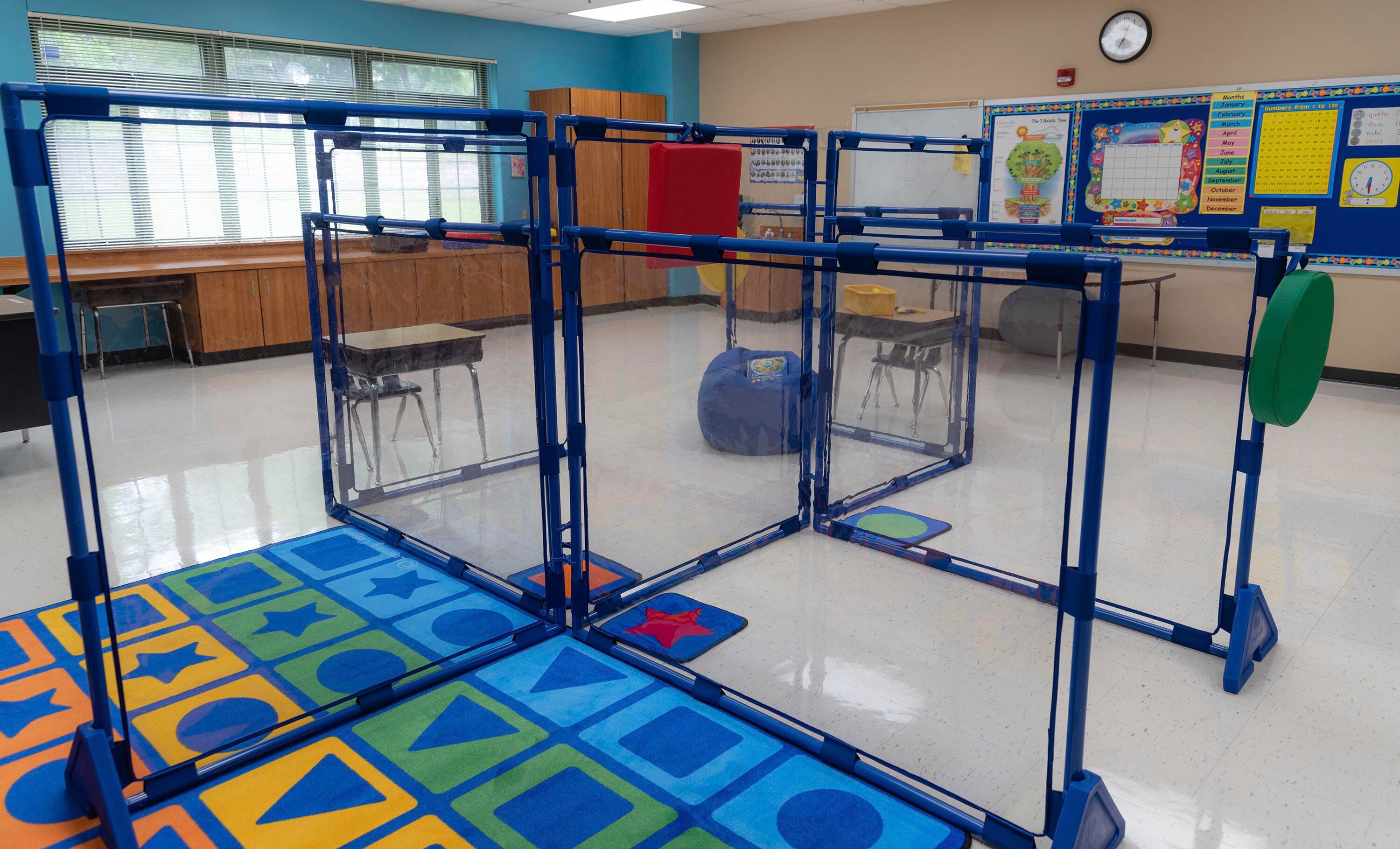 These clear PlayPanels create a desginated space to play without interrupting caretaker visibility. The modern classroom utilizes distinct and separate flex-spaces for different learning activities to maximize engagement. These Big Screen Clear PlayPanels are the perfect room dividers for any commercial daycare, playroom, or carespace where clear sightlines from flex-space to flex-space is a priority for caregivers. Separate your room into a sleeping space, an art station, a reading nook or for any other purpose. Each panel measures 47-1/2 W x 1-1/4 D x 59-1/2 H inches. Set of 8.Features