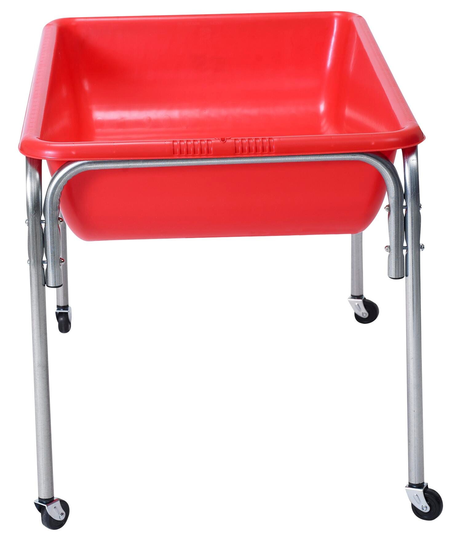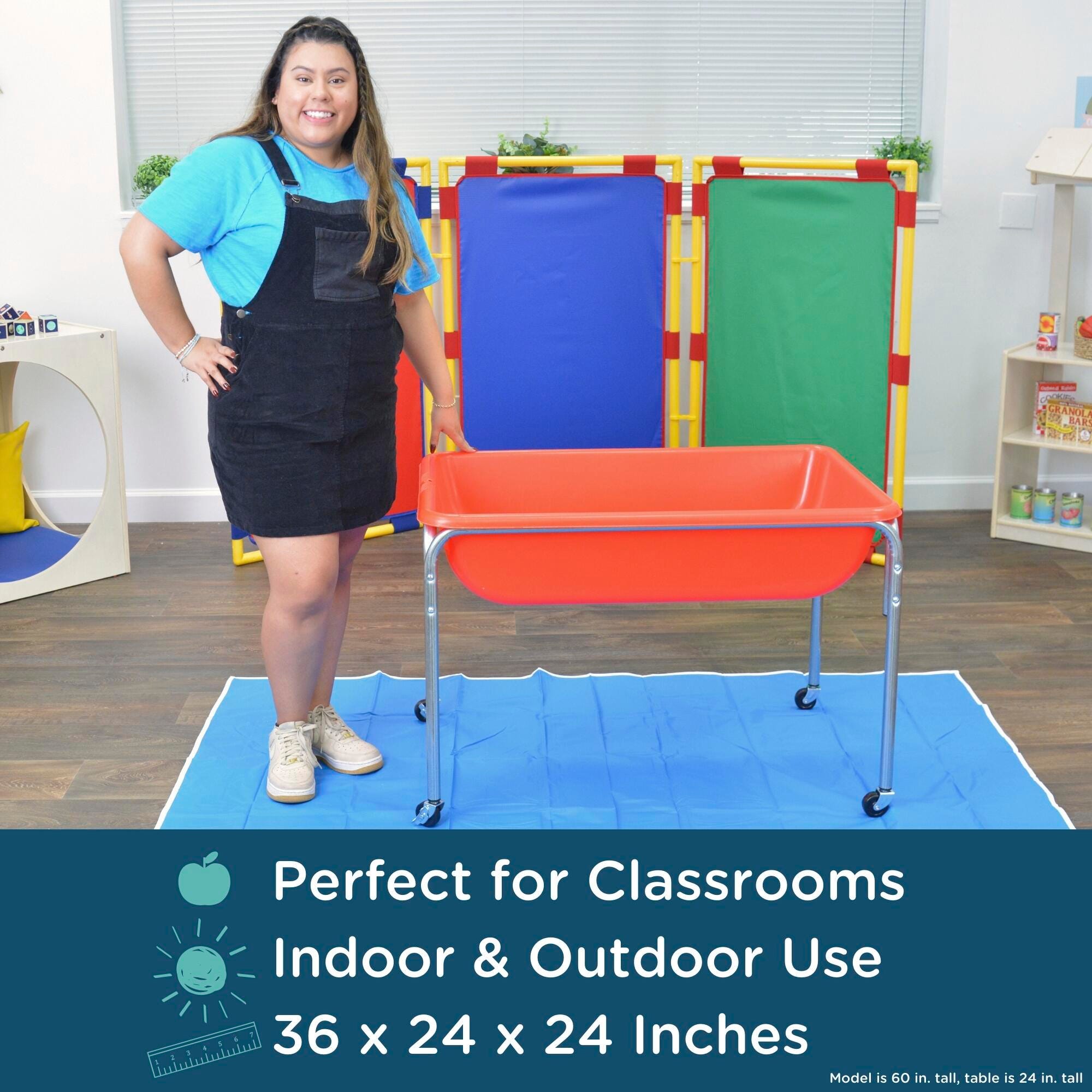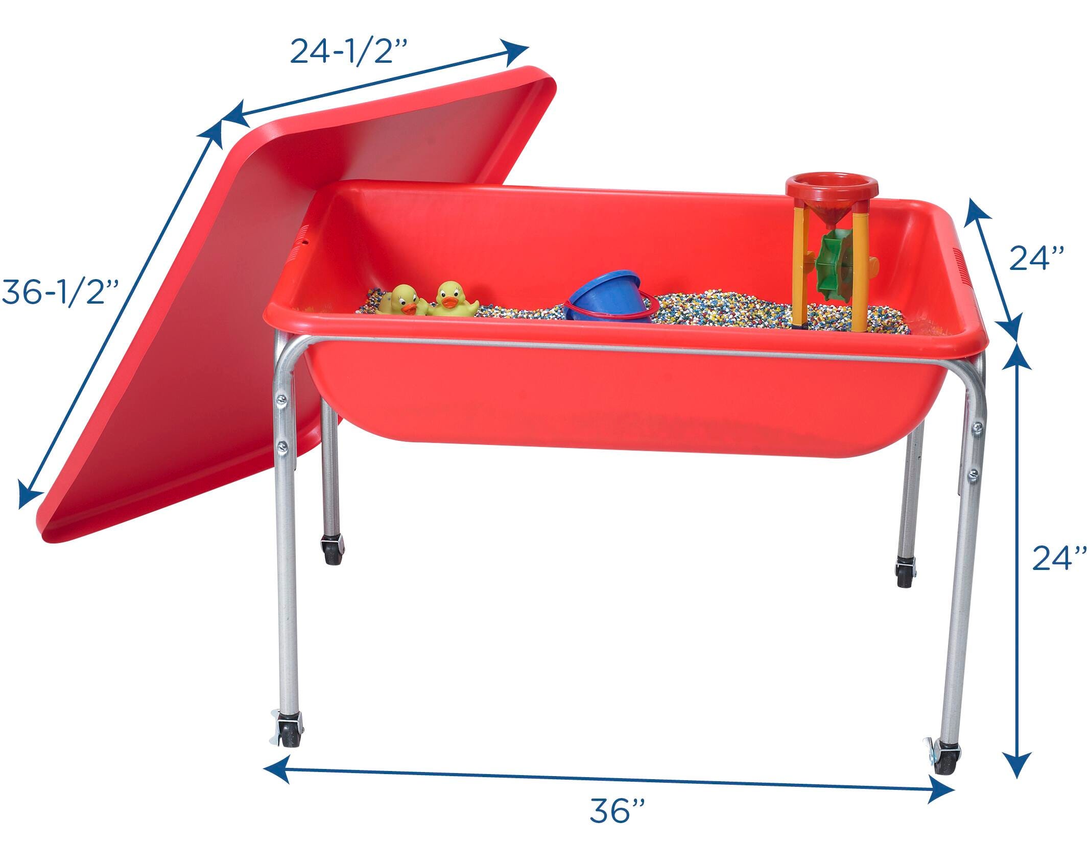 Looking for a way to encourage creative play while providing a calming sensory experience for your children? This versatile sensory table is designed to fill those needs and more, making it the perfect addition to any play area whether indoors or outdoors. The table is made of sturdy, weather-proof plastic with a rust-proof chrome steel frame. The table also has four casters for easy movement with two locking casters for stability. Cover the tub with the lid for safe and tidy storage. Table and lid measure 36 W x 24 D x 24 H inches.