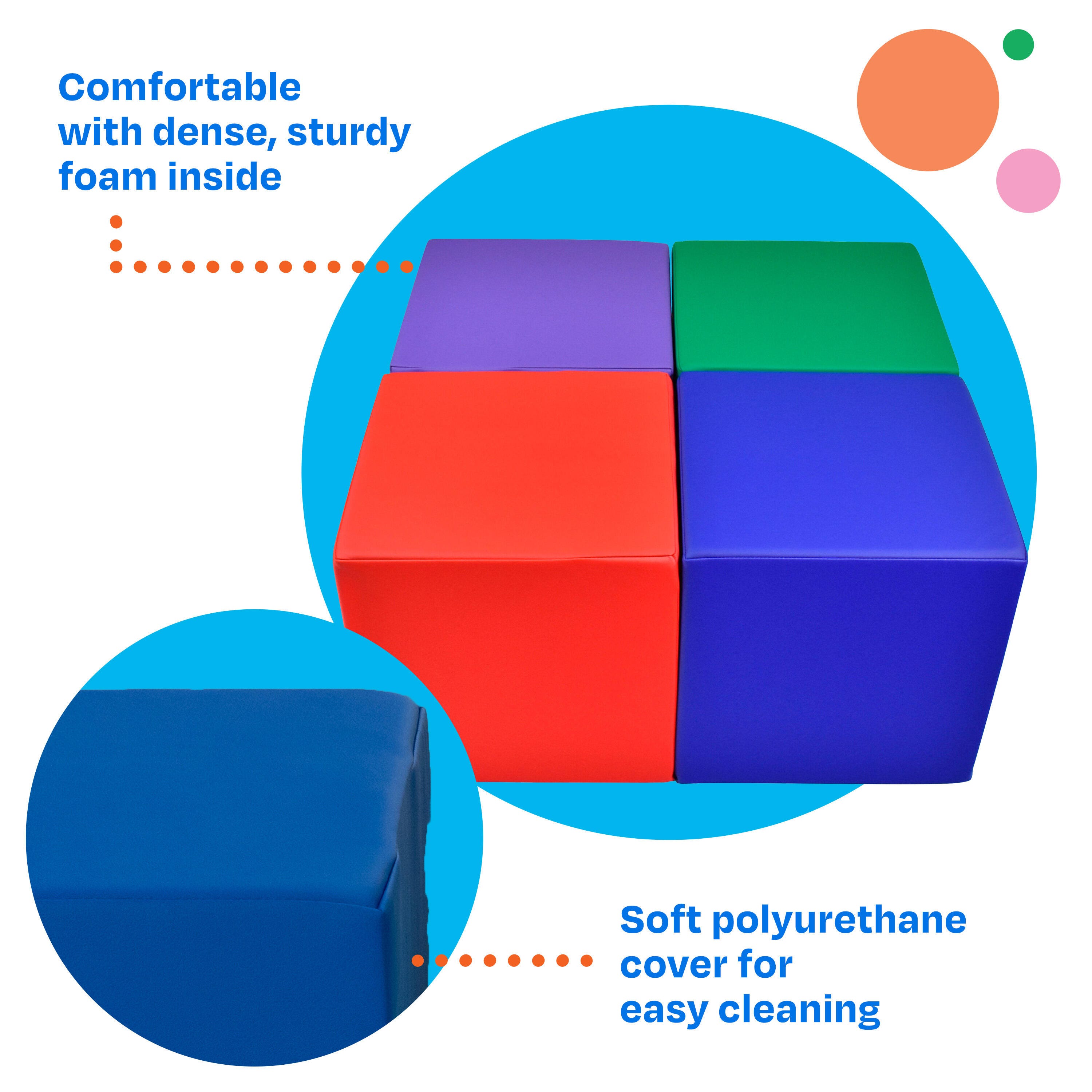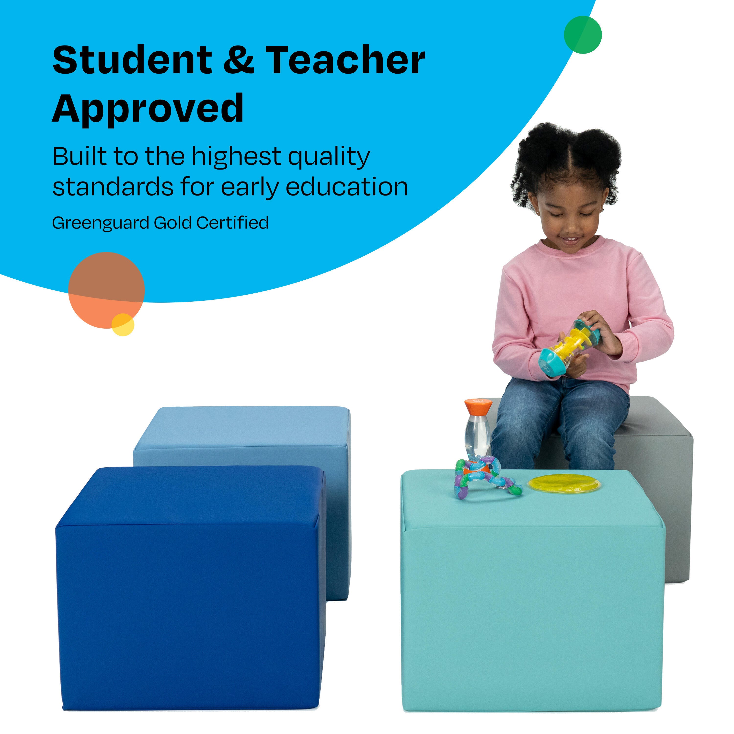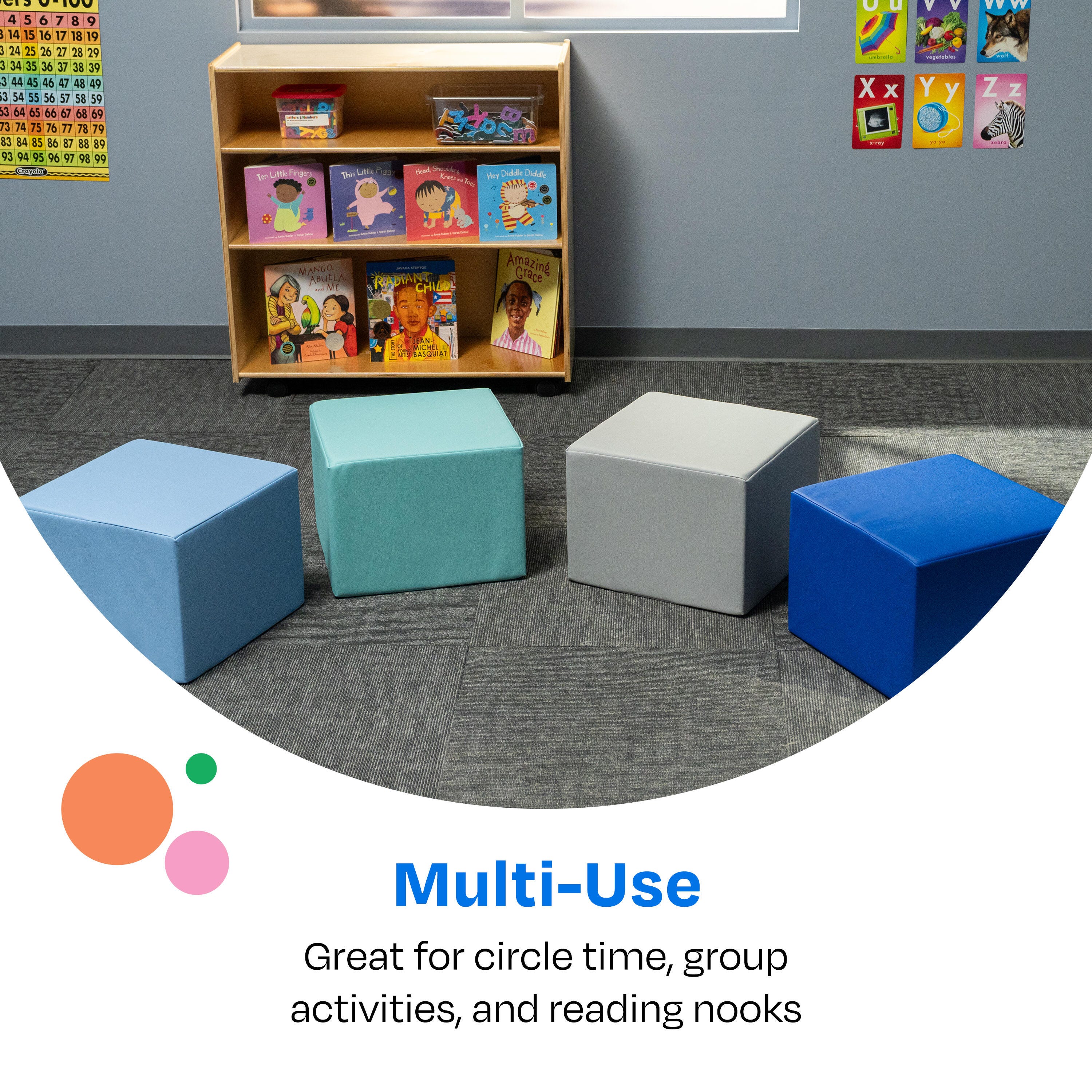 - Use children’s ottomans for reading, playtime, classroom learning, circle time, and more