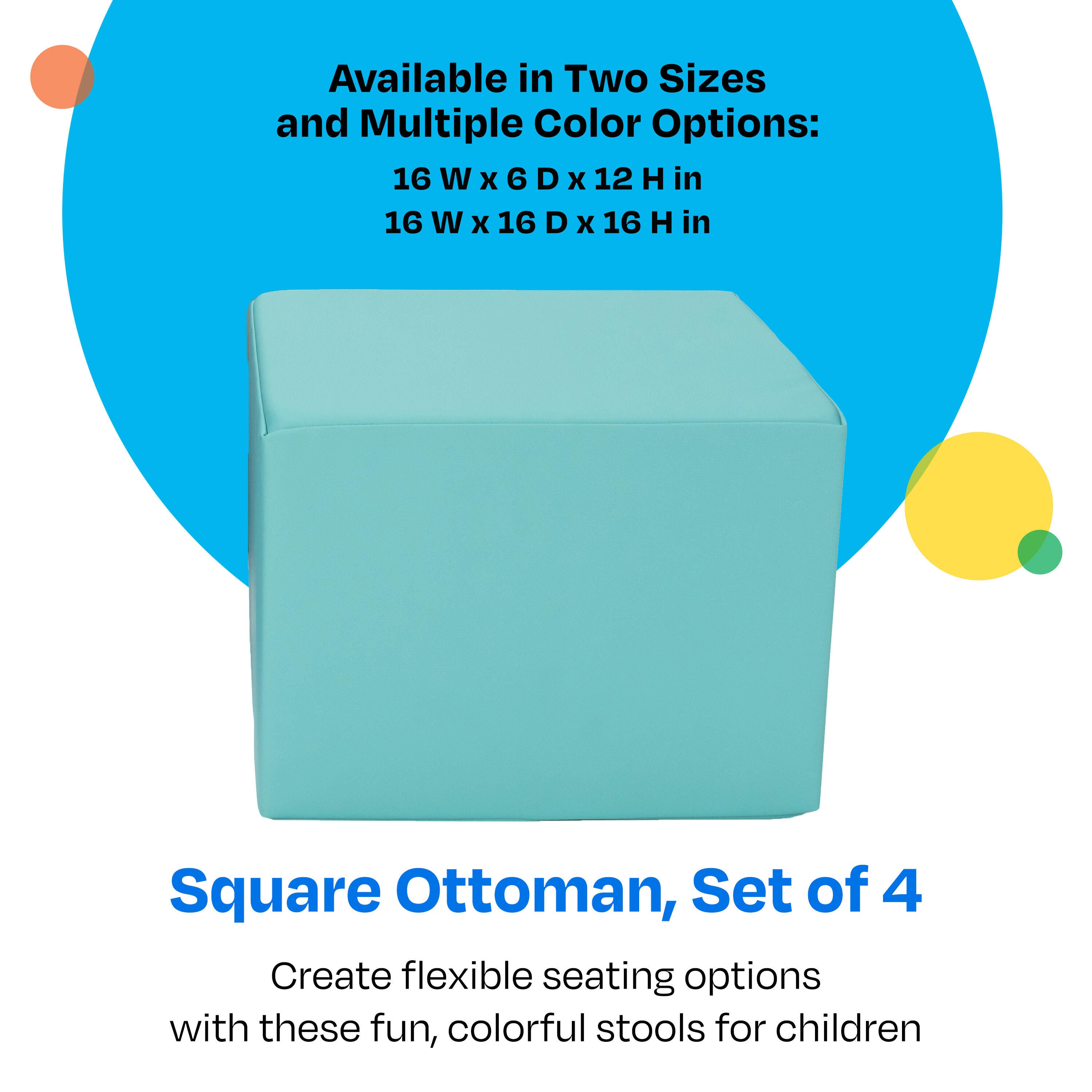 Add comfort and fun to your classroom with this 4-pack of square poufs for children.