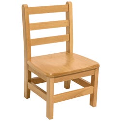 Wood Designs Deluxe Chair measures 14 W x 12-1/8 D x 26-1/4 H inches. Constructed using mortise and tenon jointing from solid birch hardwood. Coated with Tuff-Gloss UV Finish. Curved back legs to minimize tipping backward and rounded corners bring added safety. Set of 2.Includes: